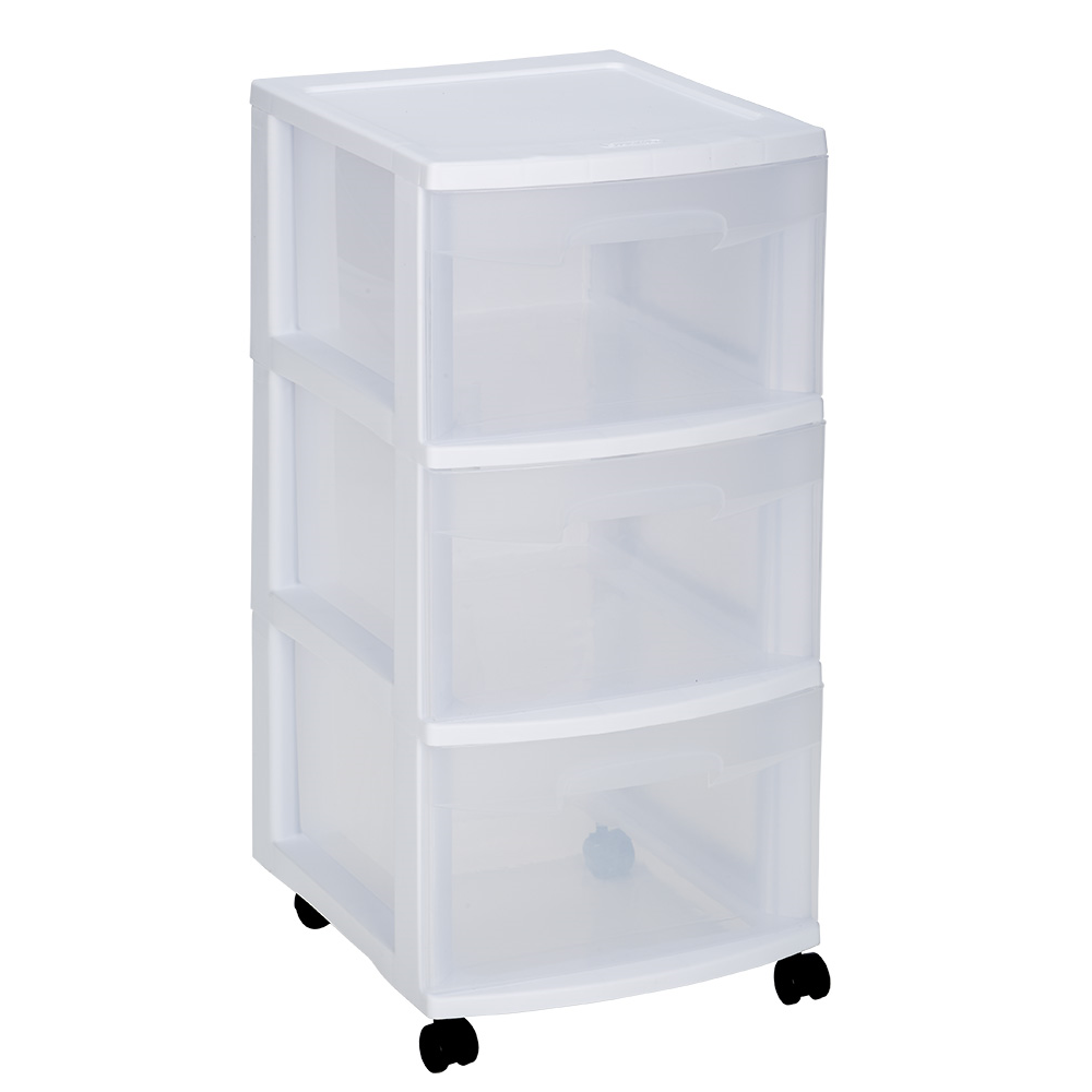 Three Drawer Cart combines see-through design with smooth functioning, easy slide out drawers which allow quick access to contents. Casters are included to create mobile storage. All carts are sold assembled and ready to use. Listed dimensions do not include caster height.