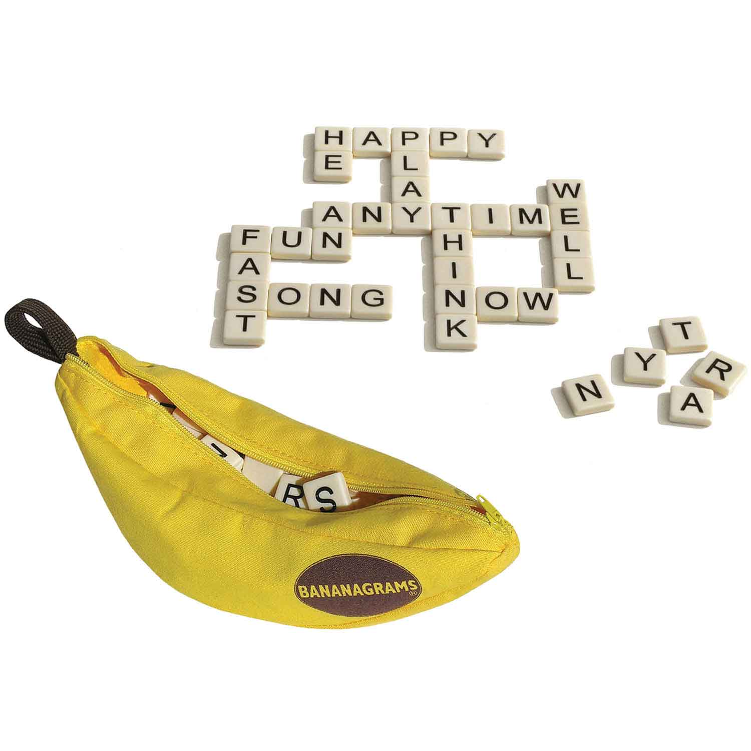 Bananagrams is a FAST and FUN word game that requires no pencil, paper or board—all you need is a table. One hand can be played in as little as 5 minutes. Its portability makes it perfect for after school activities. Just grab the pouch and go!