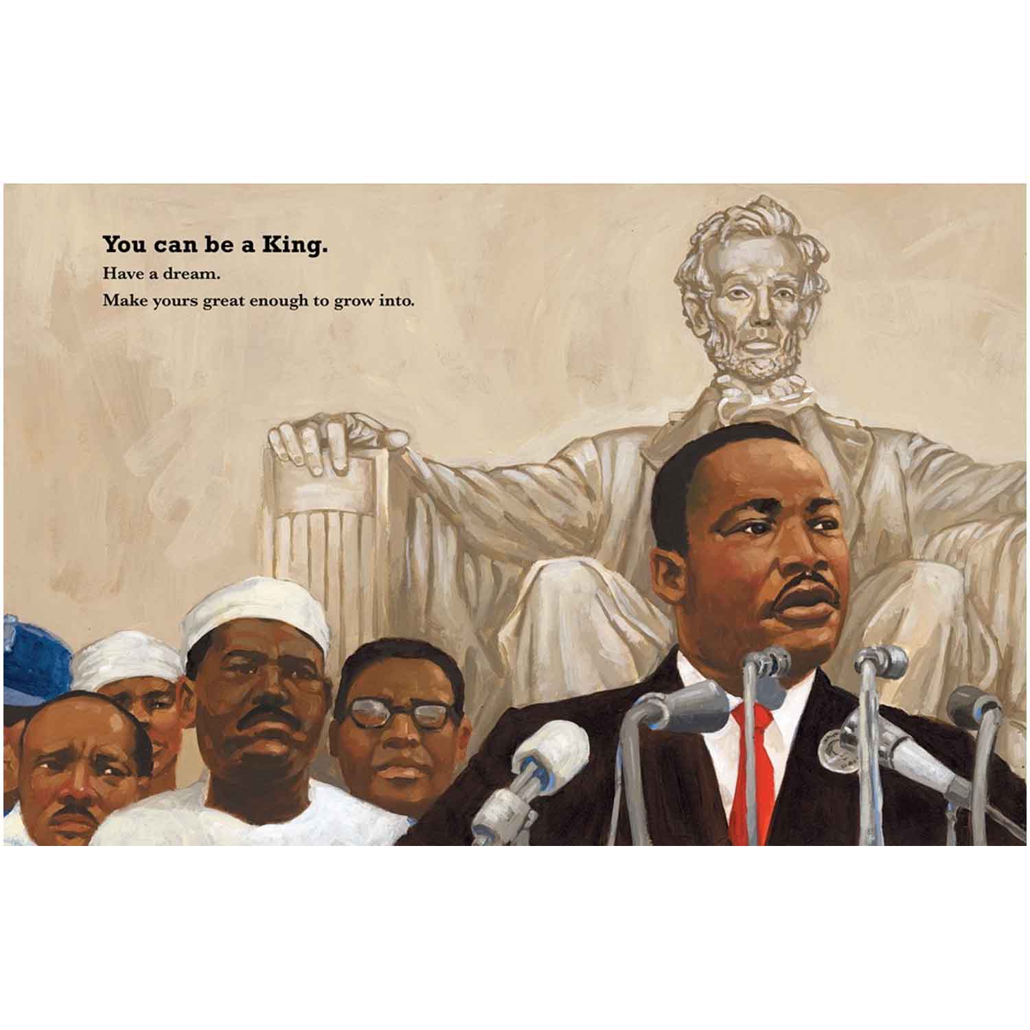 Featuring a dual narrative of the key moments of Dr. King's life alongside a modern class as the students learn about him, Carole Weatherford's poetic text encapsulates the moments that readers today can reenact in their own lives. See a class of young students as they begin a school project inspired by Dr. Martin Luther King Jr. and learn to follow his example, as he dealt with adversity and never lost hope that a future of equality and justice would soon be a reality. As times change, Dr. King's example remains, encouraging a new generation of children to take charge and change the world . . . to be a King.