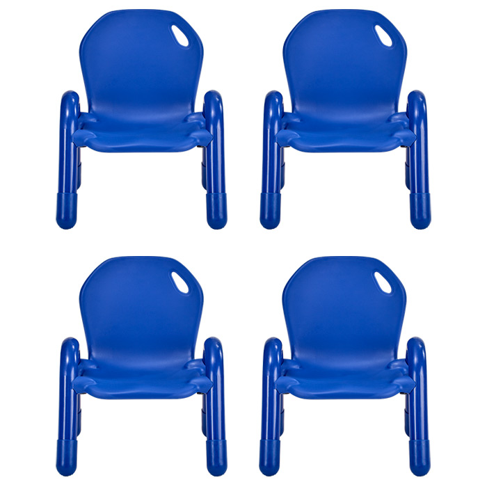 Designed to provide young and older toddlers the right seating experience, these easy-to-clean, easy-to-stack lightweight table and chair sets each include a 30" x 30" square table with adjustable height and four blue chairs.
