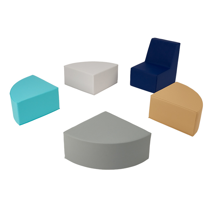 This five-piece lounge set is designed for both comfort and creative play in early childhood environments. Introducing Oasis Lounge, a five-piece soft play set designed for both comfort and creative play in early childhood environments. A cozy chair and four wedge-shaped cushions, all in calming Soft Summit colors. The cushions can be arranged to create a tabletop area for imaginative play or scattered for flexible seating options. Ideal for quiet time, collaborative activities, or casual lounging.