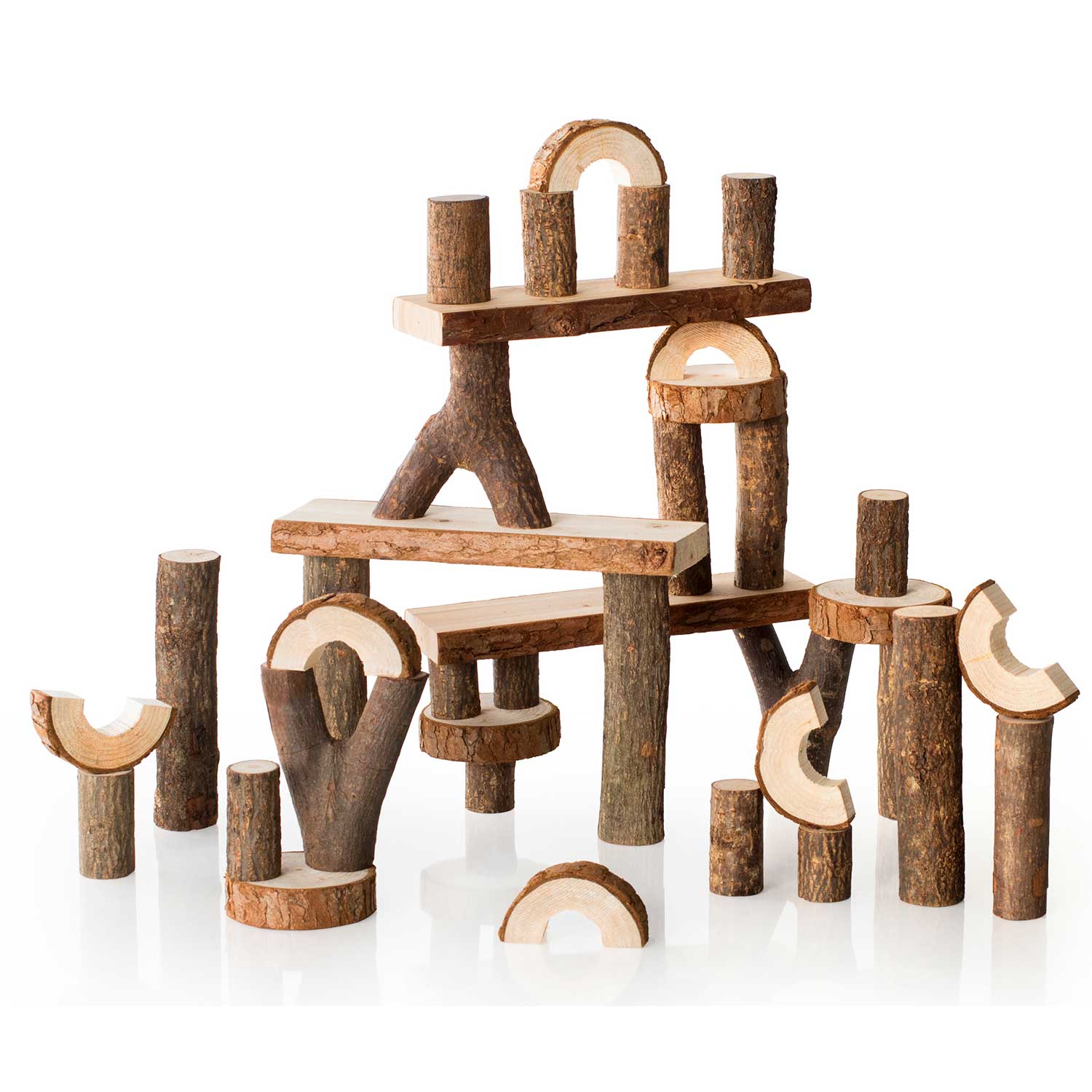 Natural and unscripted play patterns emerge when Branch Blocks are provided for building and dramatic play inspiration. The textured bark on each building piece adds sensory exploration mirroring the organic benefits of outdoor play. Use these blocks to practice stacking, sorting and STEM activities. Looking for loose parts? These blocks suit that purpose as well.