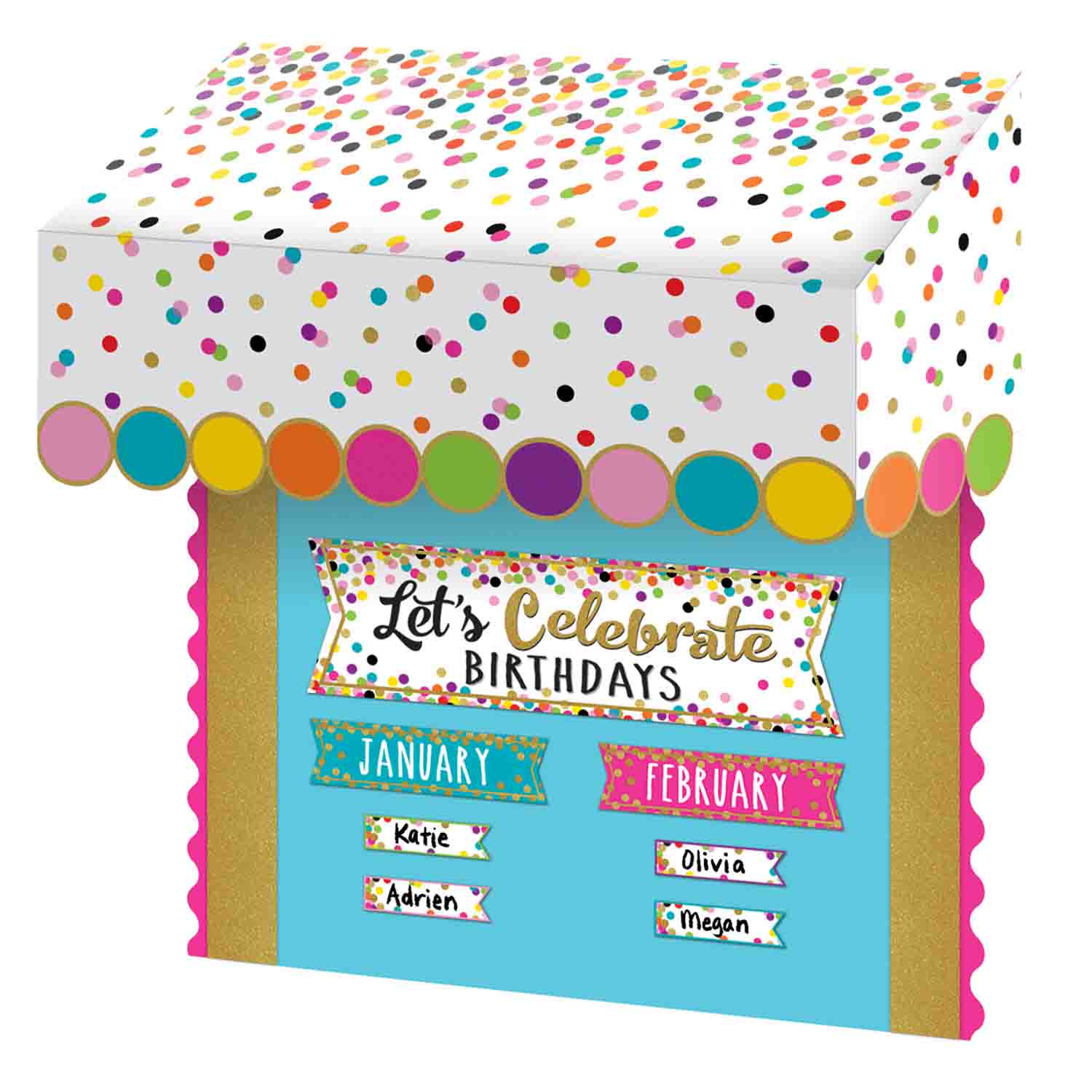 Give your classroom a glamorous makeover with this Confetti Awning. Mix and match your favorite patterns and colors to create the perfect themed classroom. Hang these sturdy awnings over your bulletin boards and entryways, organize work areas, or make fun learning corners.