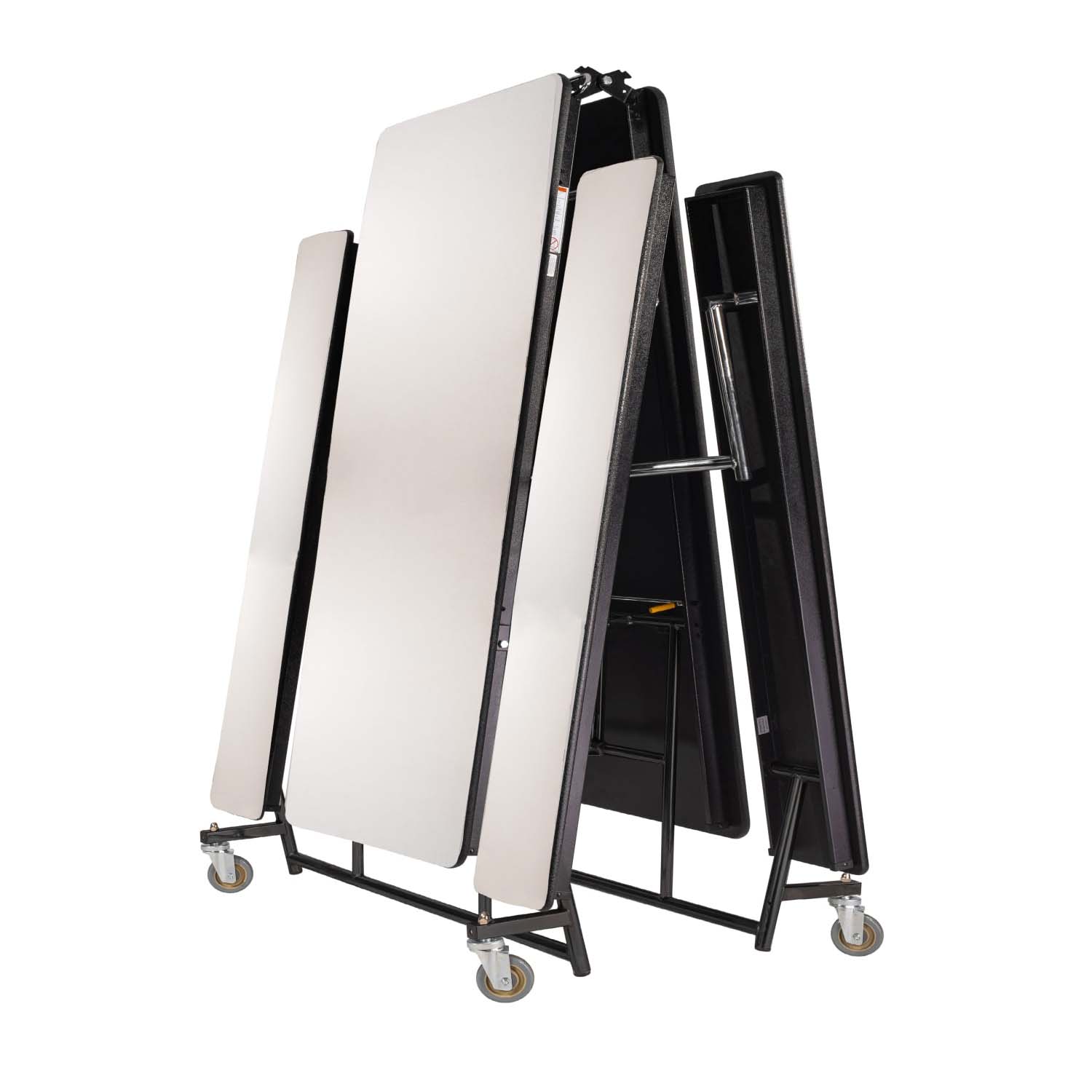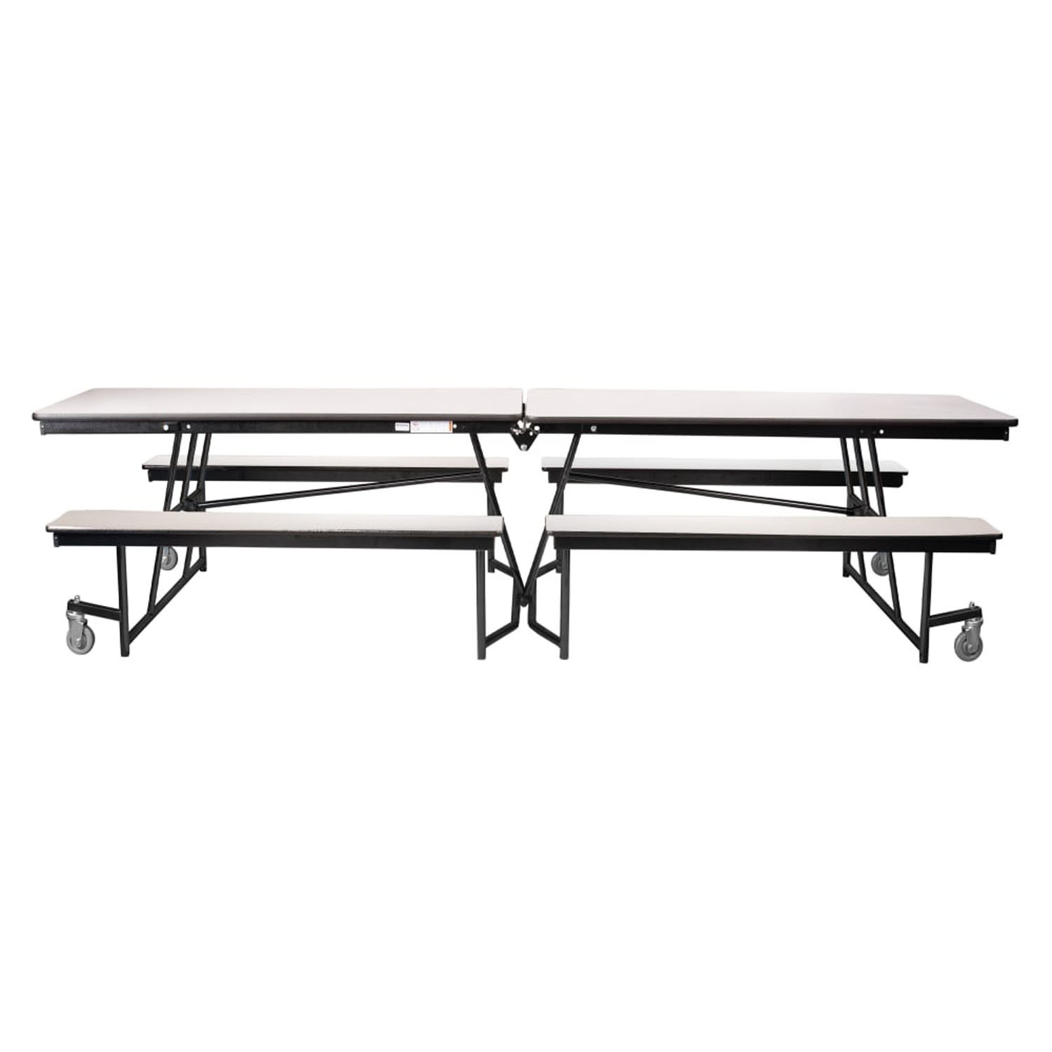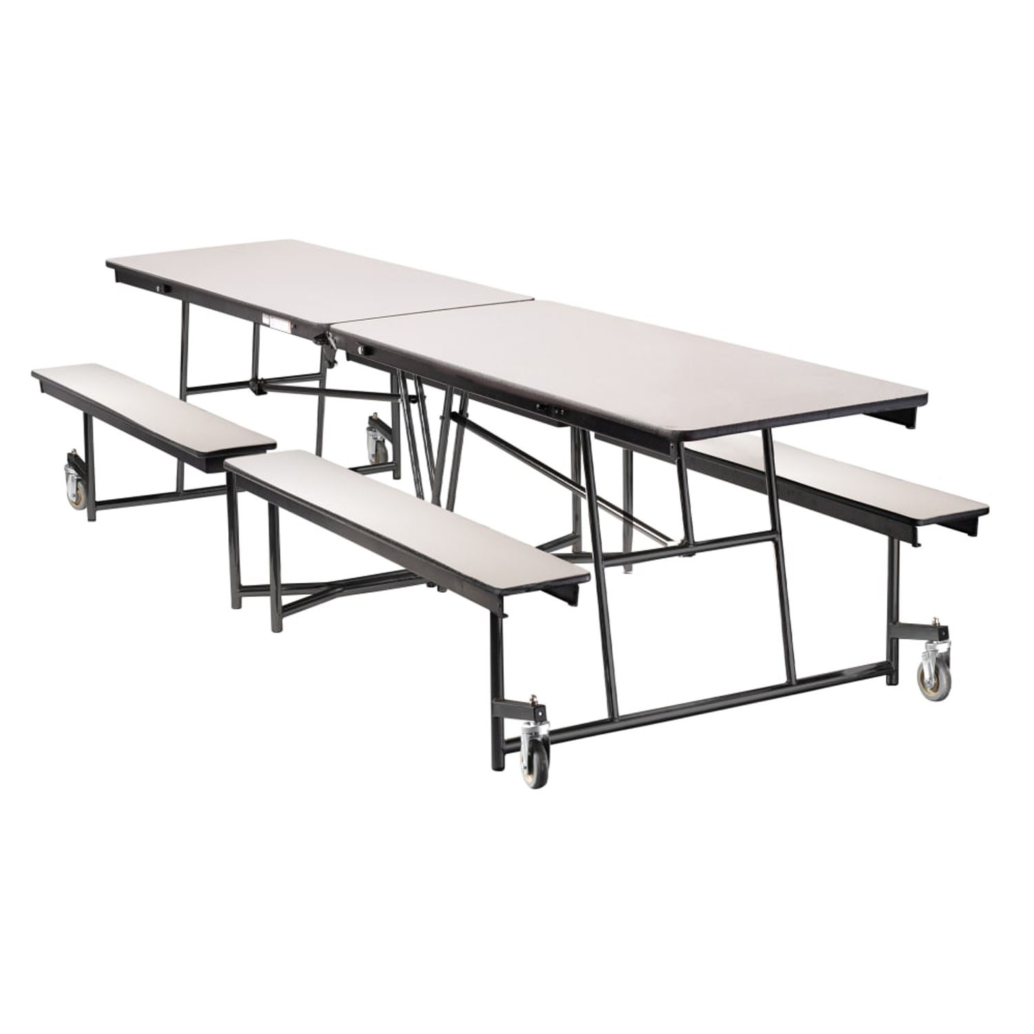 The cafeteria table is the perfect solution when more seating per table is needed. The curved frame design and generous space prevent tripping during entry and allow easy seating and cleaning. The storage latch automatically locks when folded for safety.
