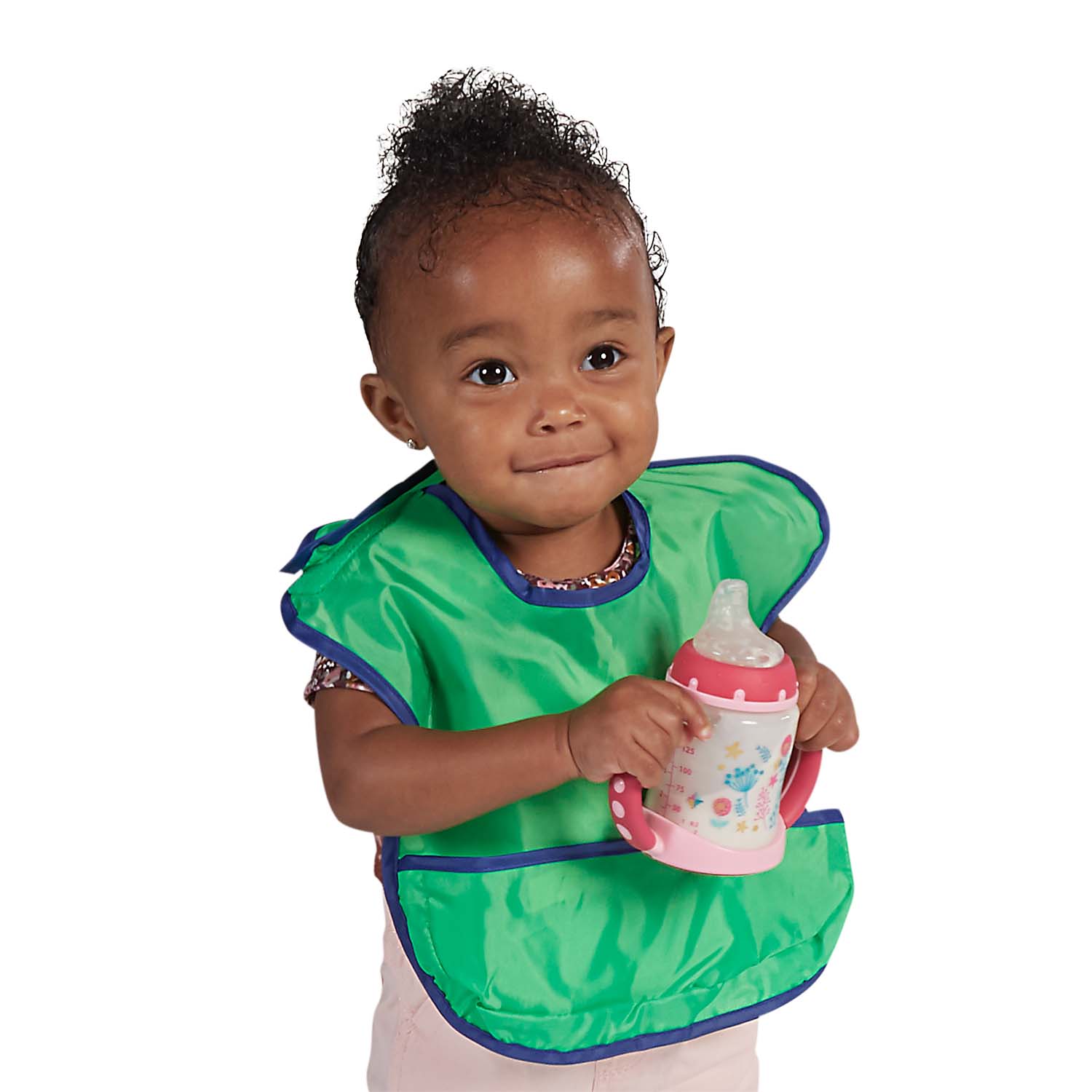These waterproof bibs feature a gusseted crumb catcher pouch to snare crumbs and spills. Supports family style dining by providing a child-sized, easy-to-manage tool for self-serving and happy eating!