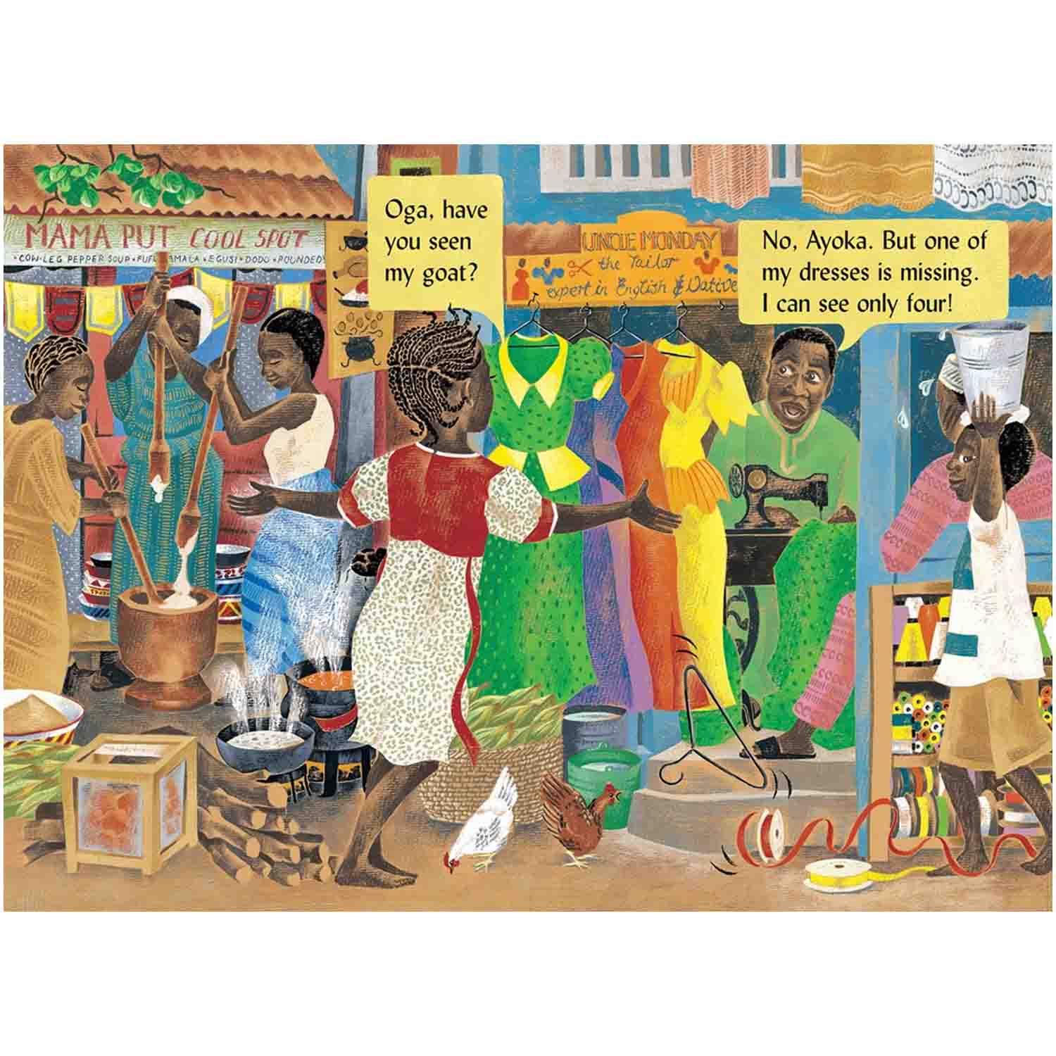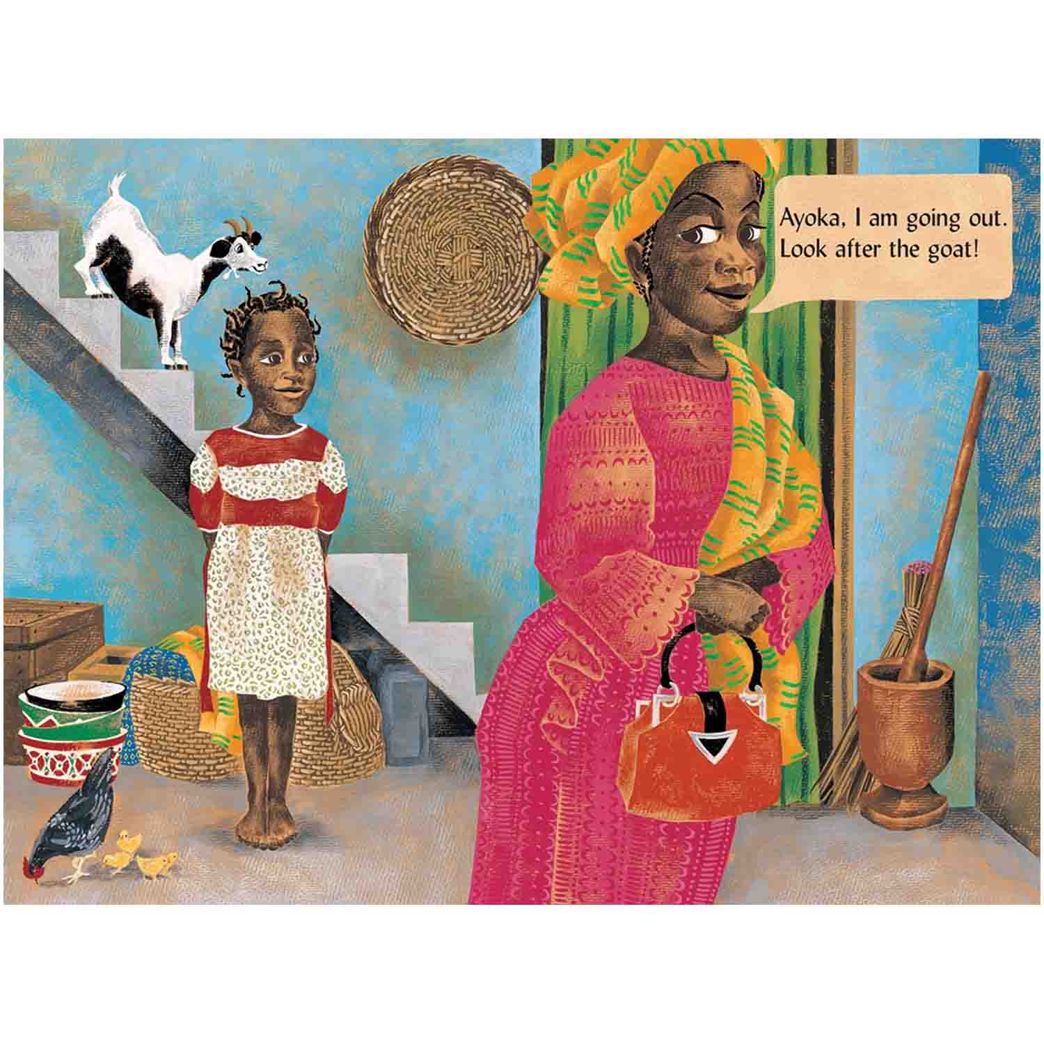 Chase after a mischievous goat! Ayoka has been left in charge of the family goat - but within minutes the goat has vanished. This Nigerian market tale uses humor to impart a message about responsibility, and includes about Yoruba costume and language, Nigeria facts, and market life.
