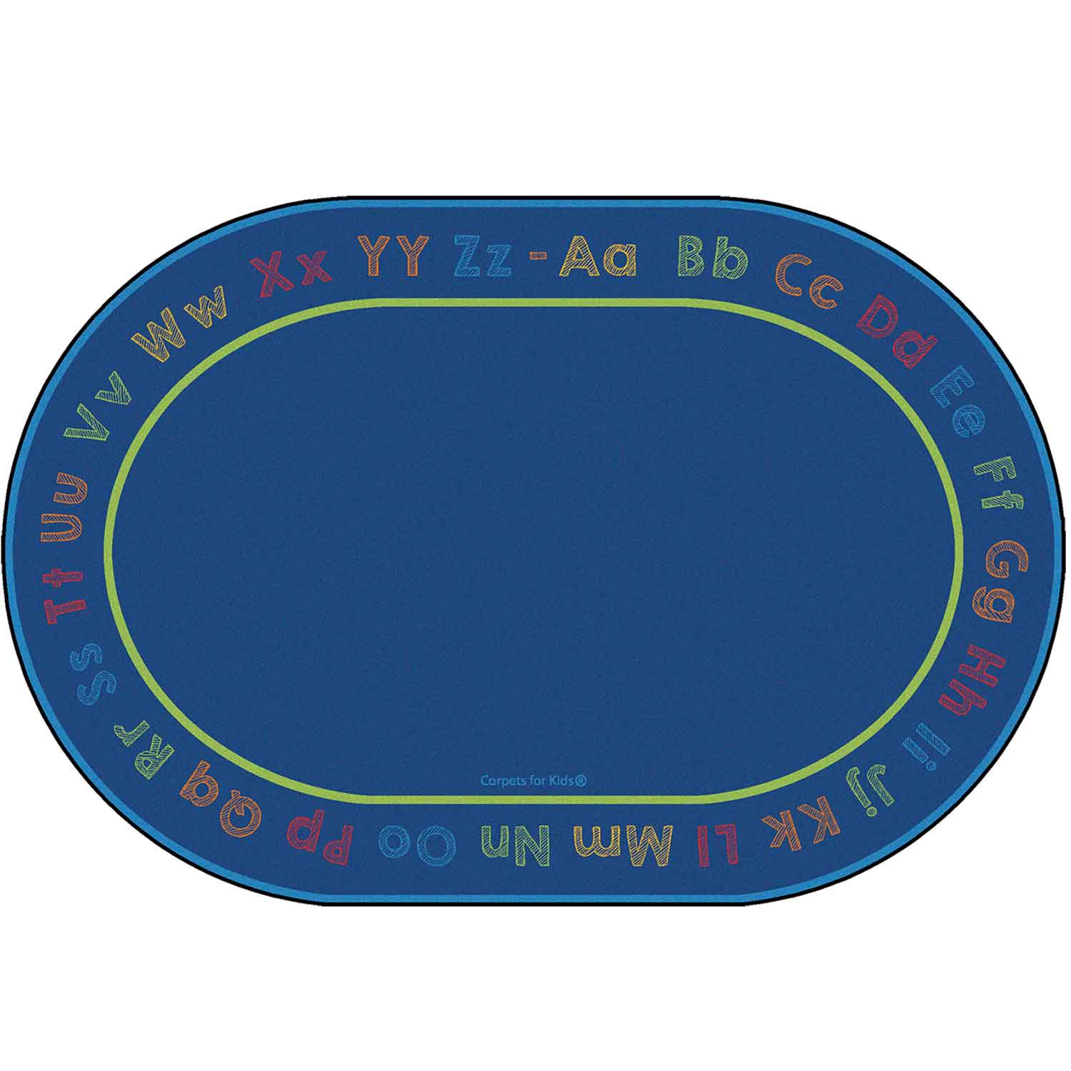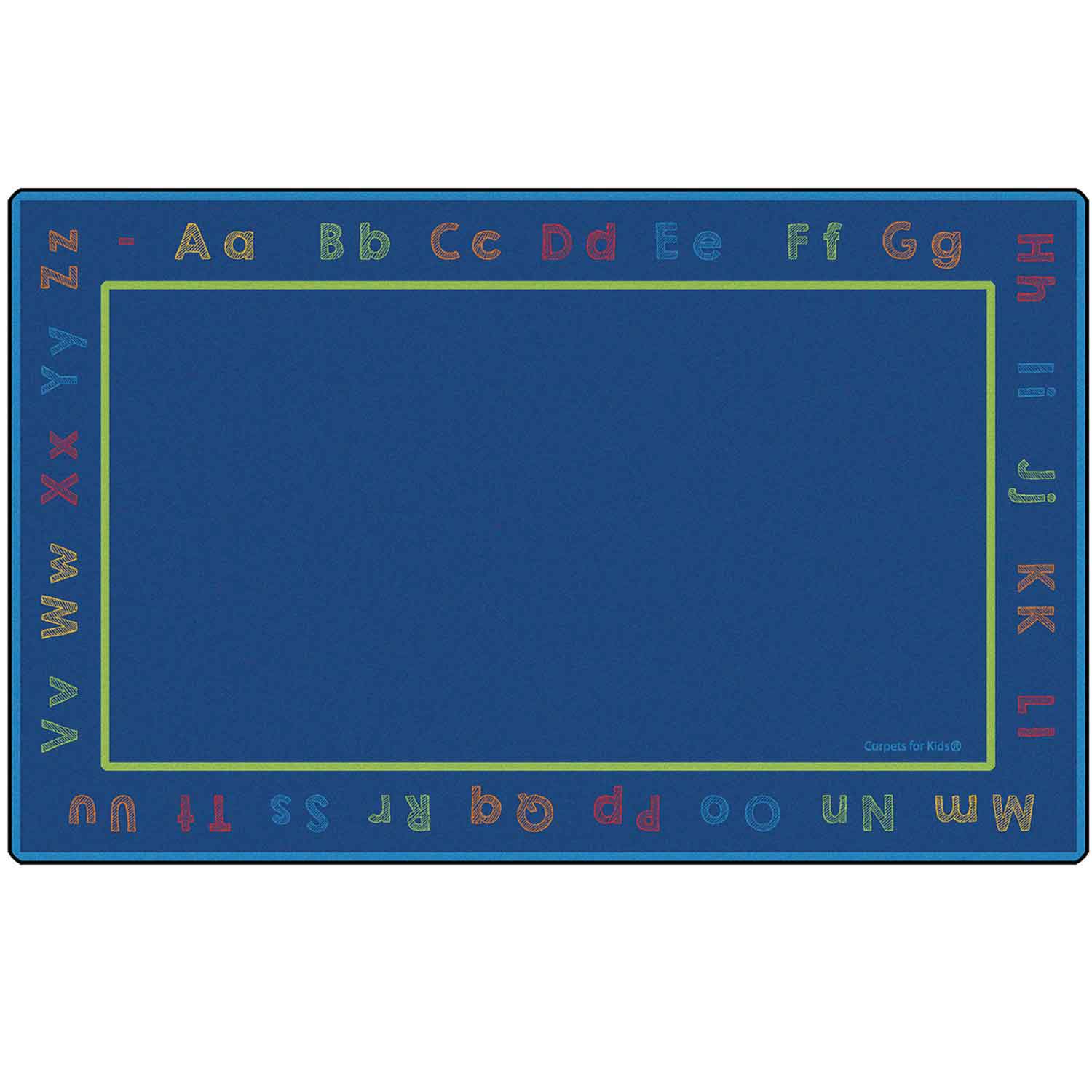 With a fun border of chalkboard written letters, this classroom rug provides a great place for learning and play!