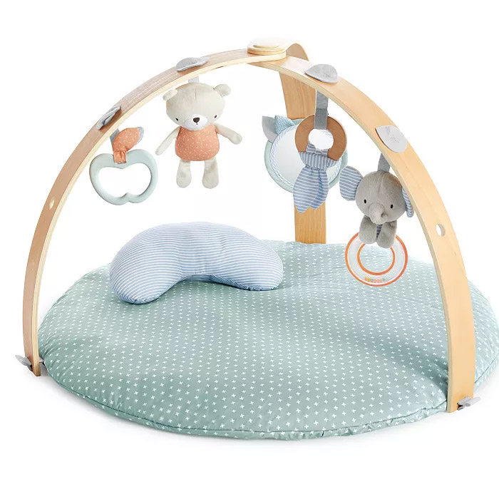Enhance baby’s playtime with the Cozy Spot Activity Gym. This versatile play space features an ultra-plush mat for ultimate comfort and a wooden arch with five detachable toys. The reversible cover features 2 neutral prints to match any decor. When playtime is over, simply fold, store, and carry this play gym with the durable handles.