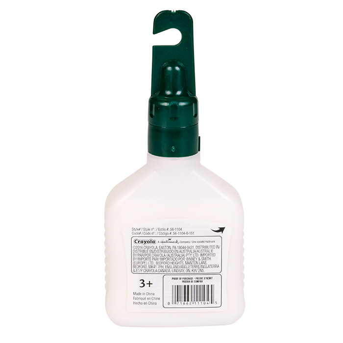 School glue is essential for everything from science projects to world-class works of art. Crayola offers a washable glue that has no-run formula. Dries clear, doesn’t crack.