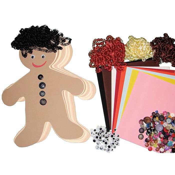 Culturally diverse people kits are fun for everyone! Kits include 24 people-shape cut outs, velour, and gummed paper, shredded wax tissue paper, fake curly hair, buttons and wiggly eyes for hours of creative crafting. Perfect for your All About Me projects!
