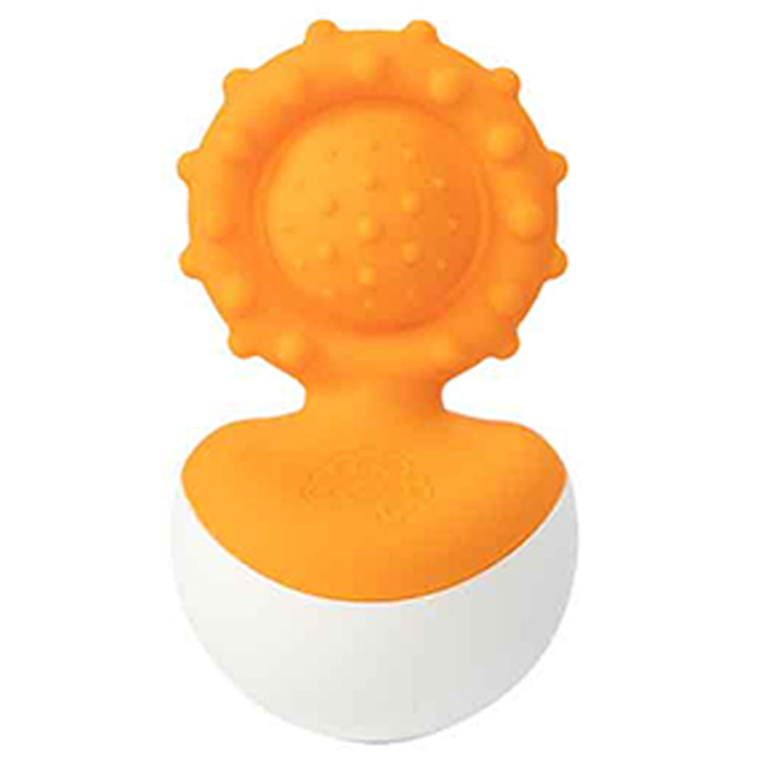 Encourage sensory development with the Dimpl Wobbl. Babies will be captivated by the toy's wobbling and spinning actions, promoting exploration and fine motor skills. Chewable, grabbable, and easy to release, this toy provides hours of tactile fun for little ones.