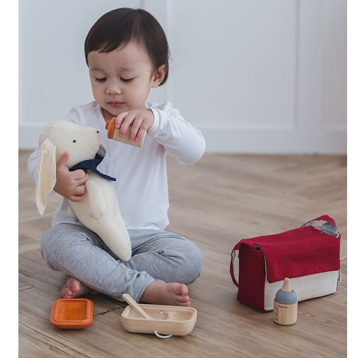 It’s feeding time! The Doll Feeding Set helps children to develop a sense of love and care through role-play. Includes a food-storage container, spoon, bib, water bottle and feeding bottle, packed neatly in baby's bag.