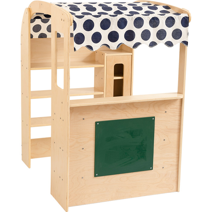 Bring big imaginations to life with the Dramatic Play Snack Shop, a preschool-friendly setup designed for engaging, hands-on pretend play. This inviting play center features a blackboard for displaying daily specials, a built-in kitchen sink, a stove, and a faucet, all designed to inspire endless storytelling. Whether children take turns as the chef, customer, or cashier, they are drawn to collaborative role-play that encourages language development, social interaction, and problem-solving skills.