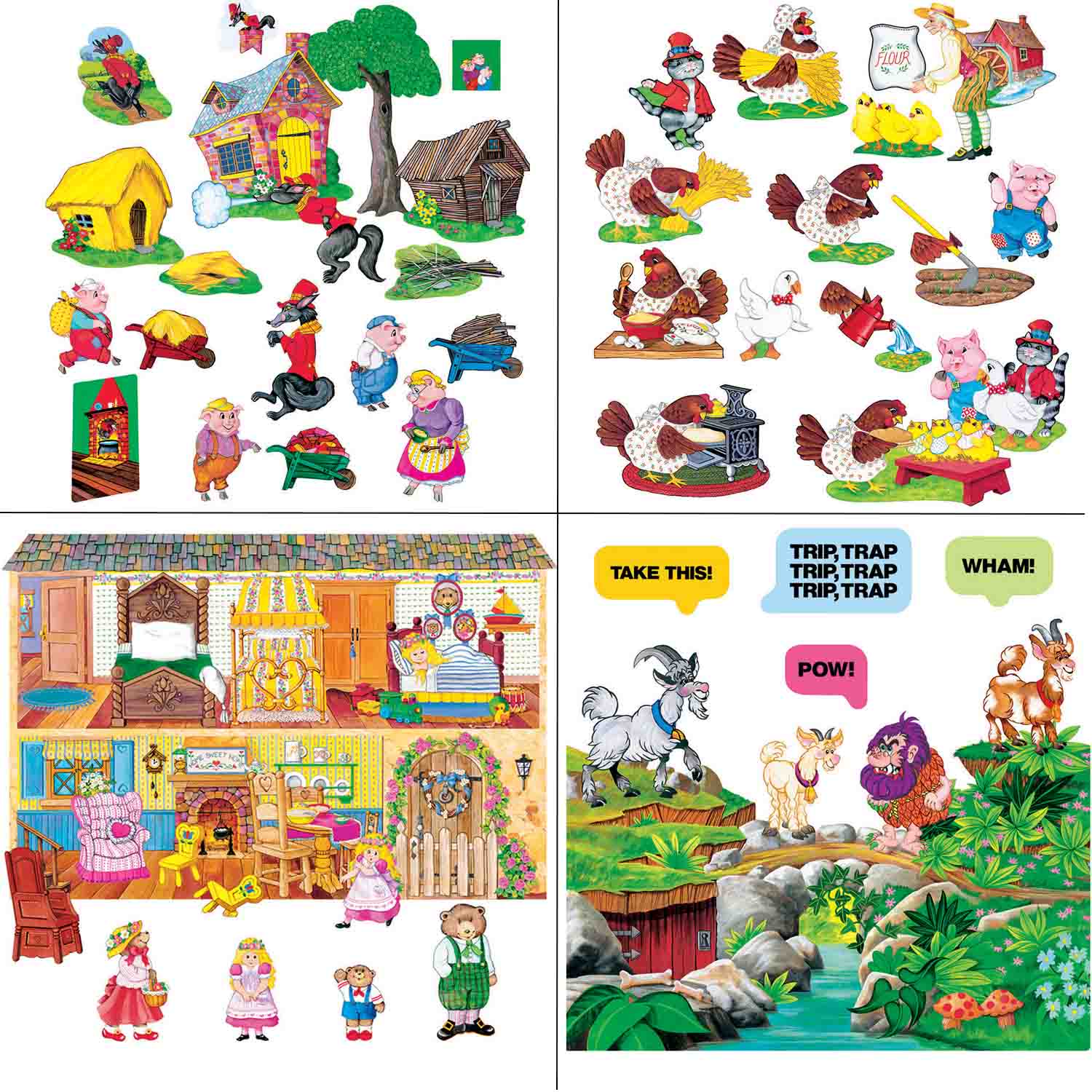 - Includes Goldilocks and the 3 Bears, The Three Pigs, Billy Goats Gruff and Little Red Hen