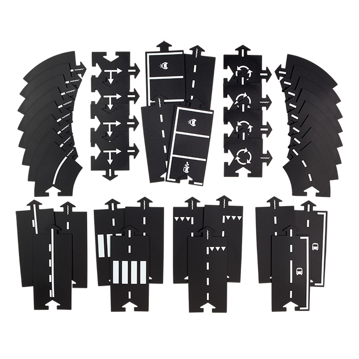 The Flexible Roadway is both durable and flexible, allowing children to create custom road networks indoors or outdoors. This sturdy and easy-to-connect collection includes straight pieces, curves, and intersections. Children can build expansive road networks anywhere, fostering creativity and enhancing STEM learning.