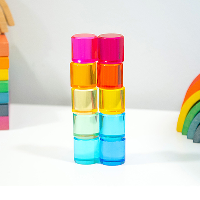 Add a touch of magic to sensory play with Gem Circles. These solid acrylic circles come in crystal colors, ideal for mixing, stacking, and balancing. Let children explore color and light by placing them on a light panel or in front of a window, creating mesmerizing shadows and endless possibilities.