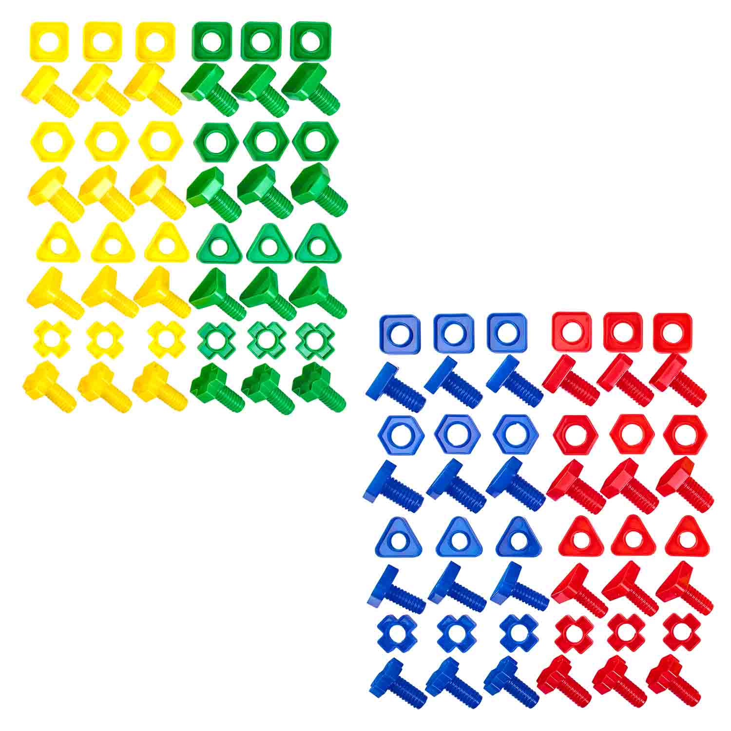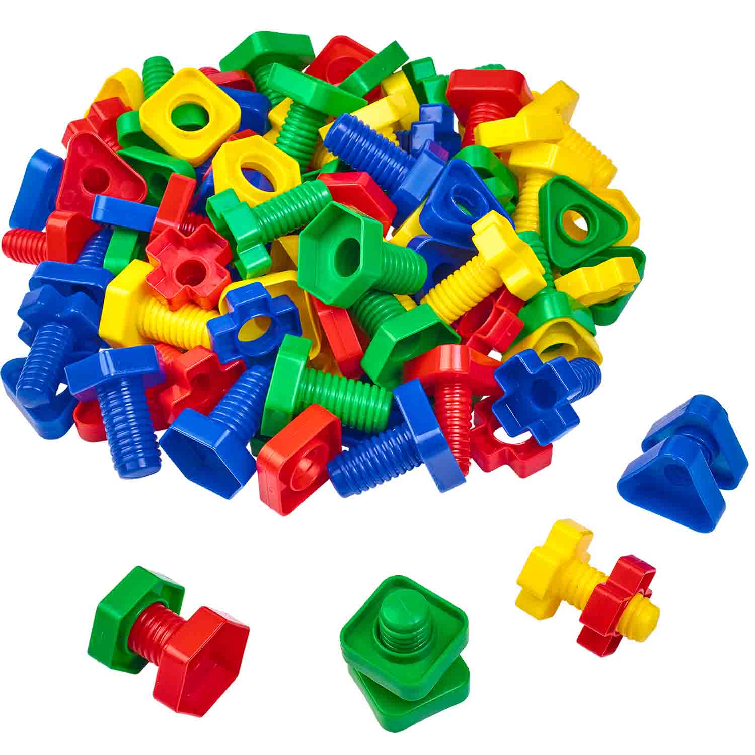 These self-correcting, oversized, geometrically-shaped nuts and bolts give little ones practice in manipulative skills as well as shape and color matching skills.