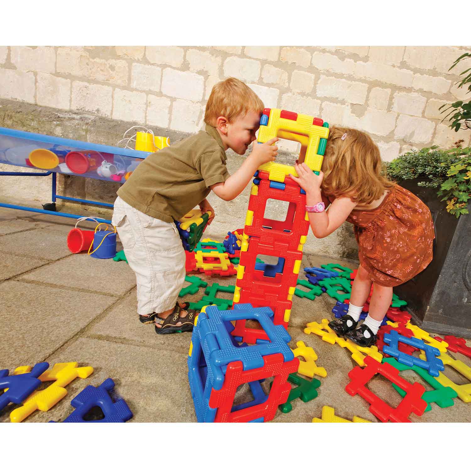 Giant Polydron is a sensory construction product made of hard, textured plastic. It encourages children to make and recognize 2D and 3D shapes and develop an awareness of shapes and texture. The easy-to-attach shapes are designed for little hands.