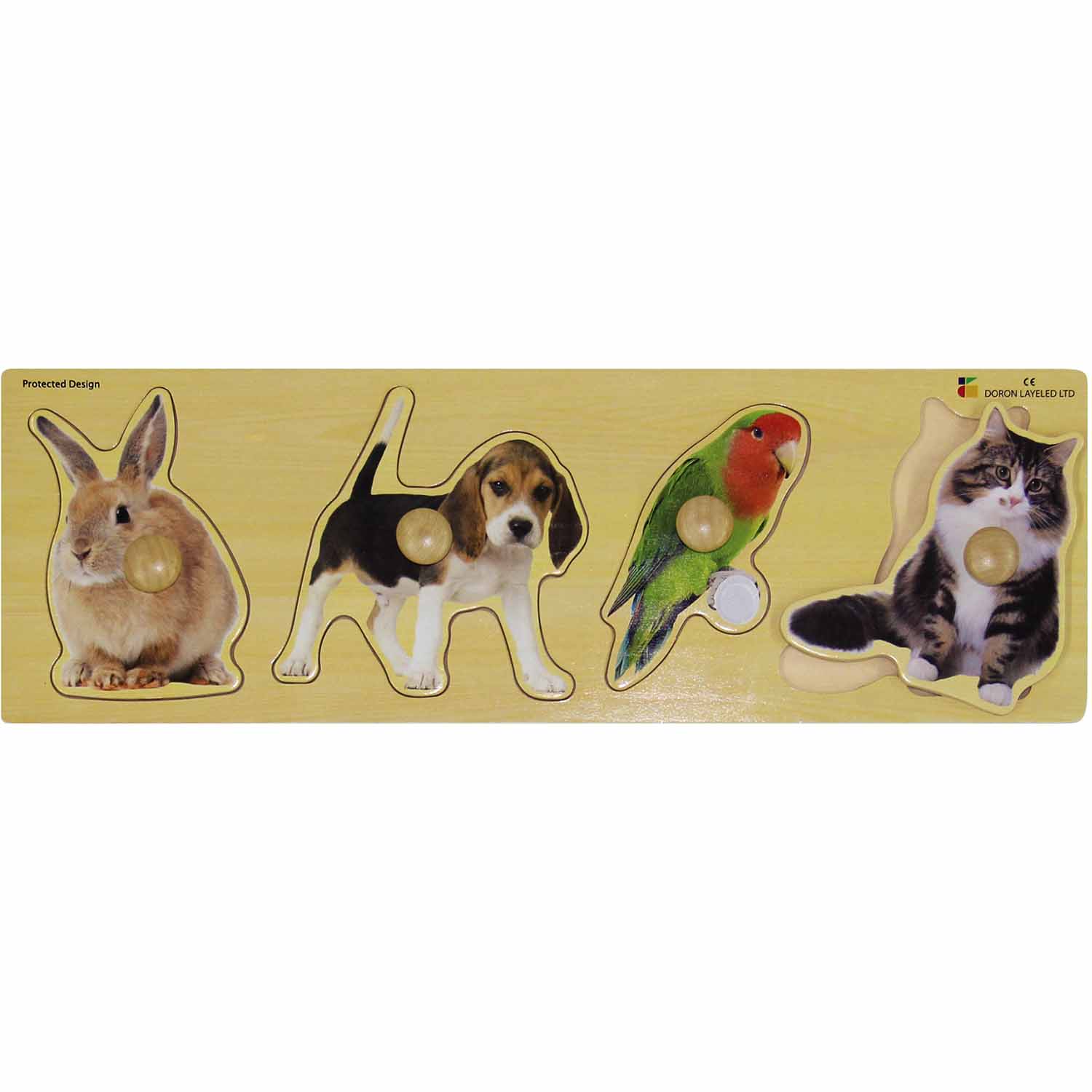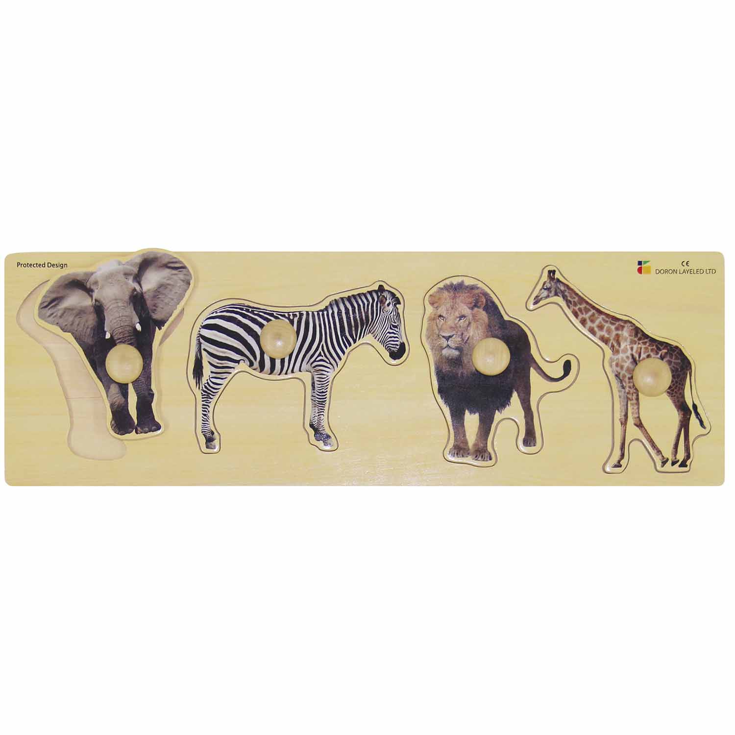 Designed for beginners and children with special needs, these puzzles have large animal pictures and extra large wooden knobs for easy removal and placing. Children use visual perception to match items by shape.