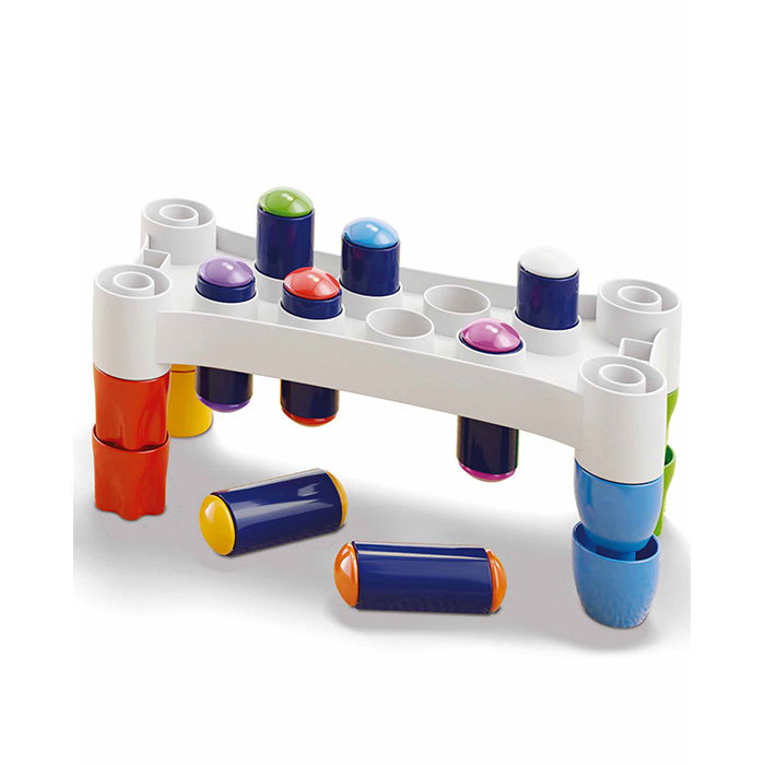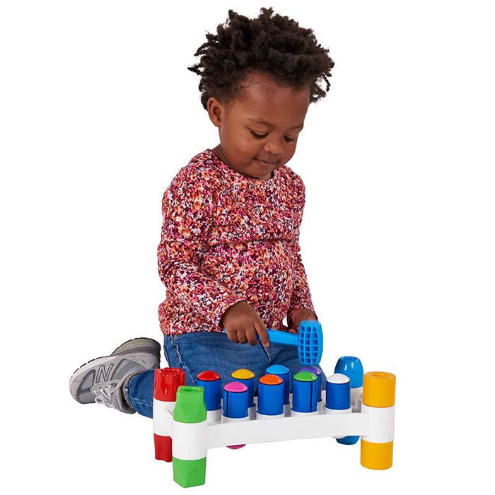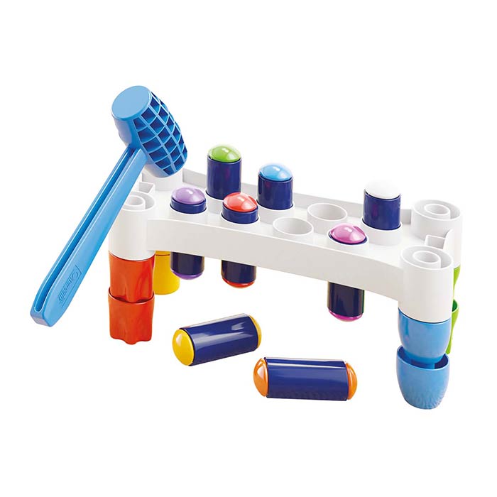 Hammer the colorful pegs and when you have finished, turn it upside down and start again!