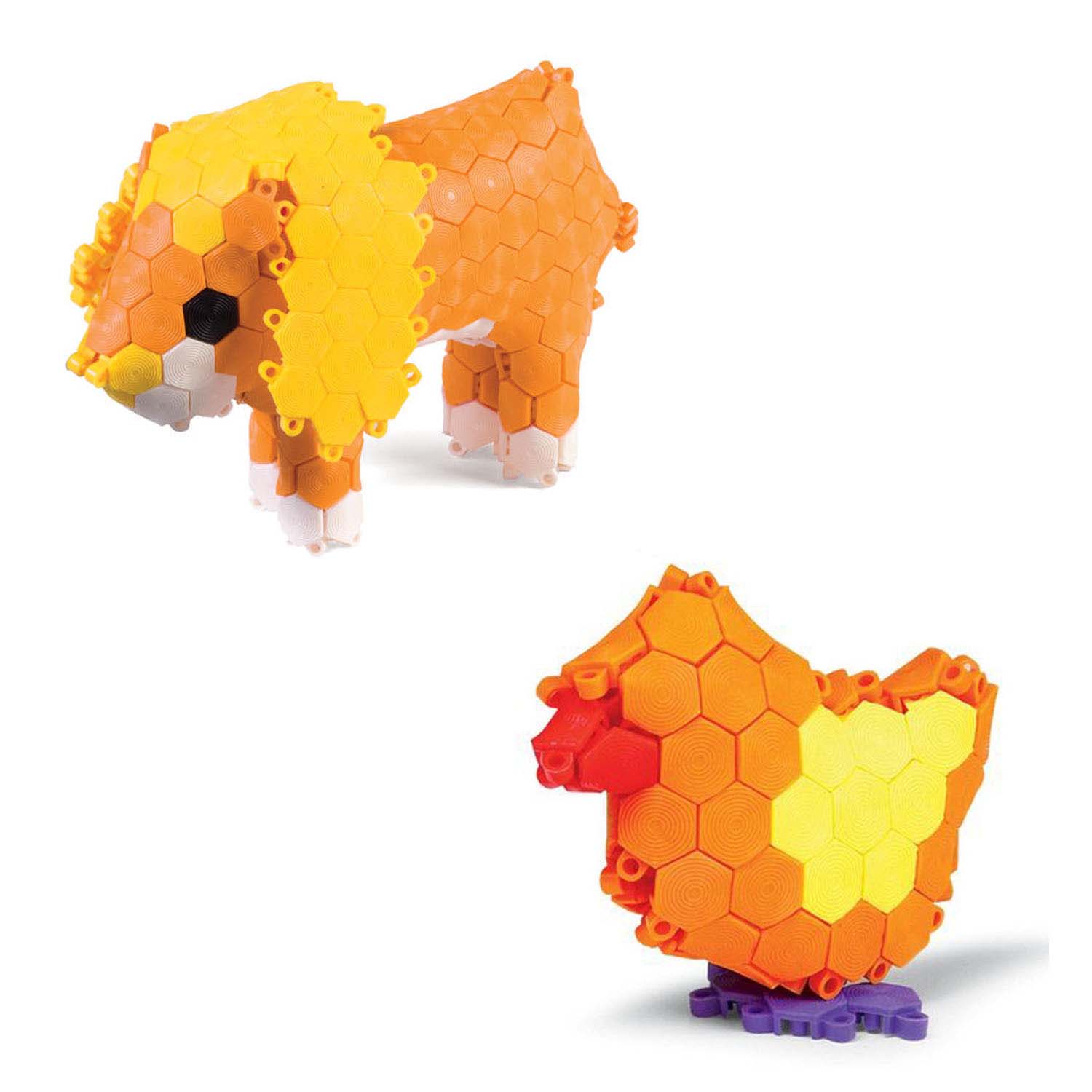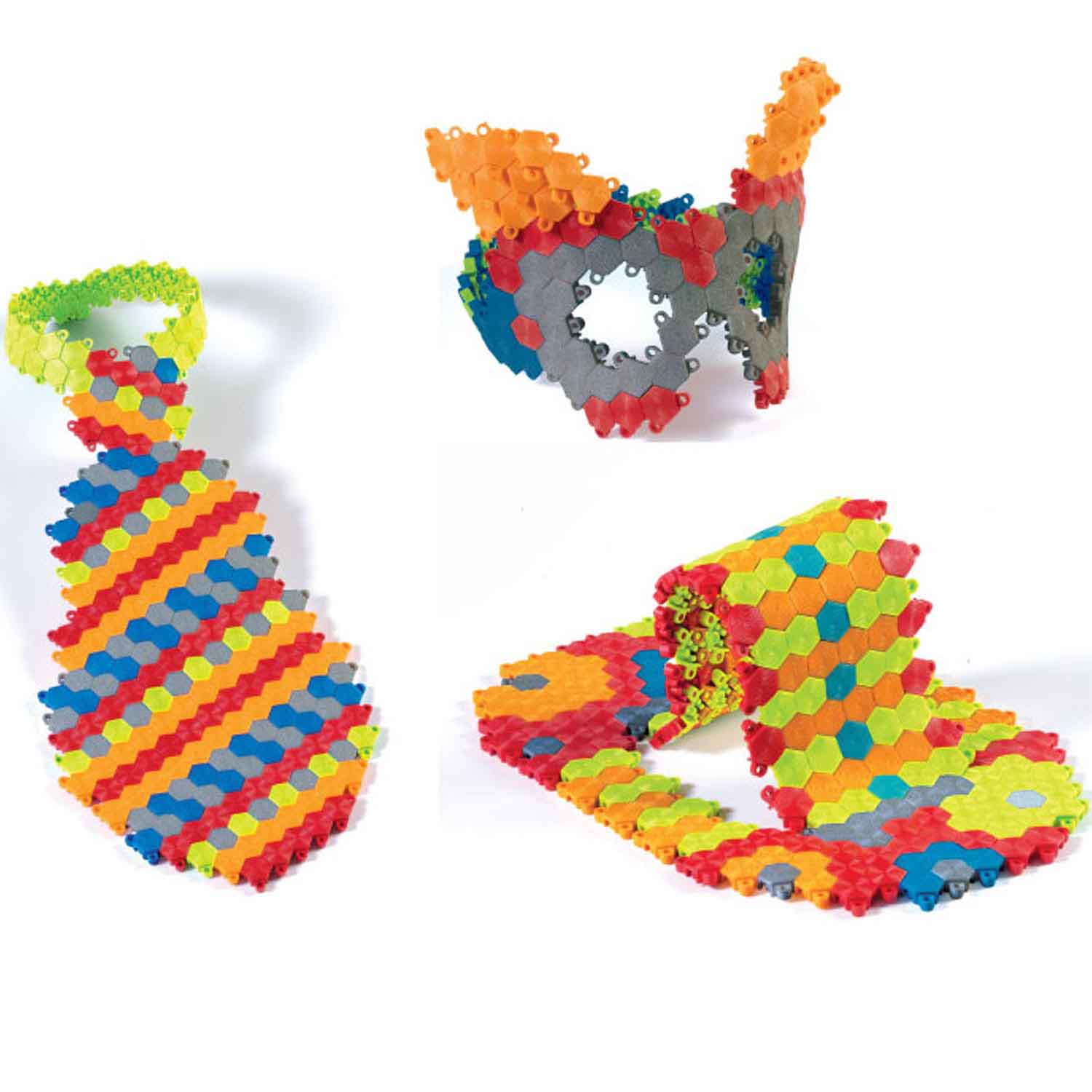 A unique building experience! The hexagonal shapes and interlocking click design allow children to build a variety of 2D or 3D models. Includes building instructions and storage case.