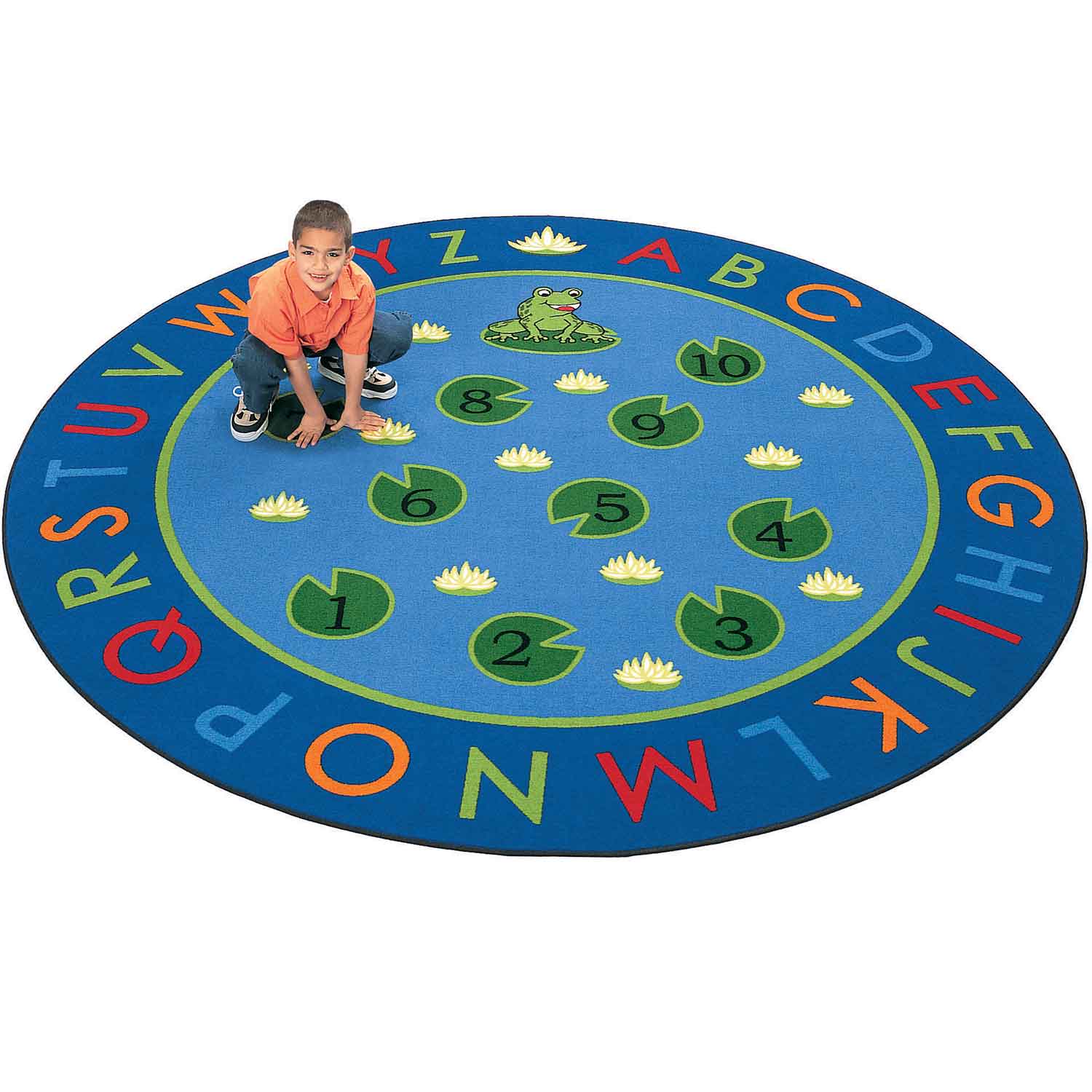 Hippity hop to the top where you will meet a cute little frog! Circletime or anytime. This classroom rug promotes fun while learning. Add Hip Hop Number Rounds for matching fun!