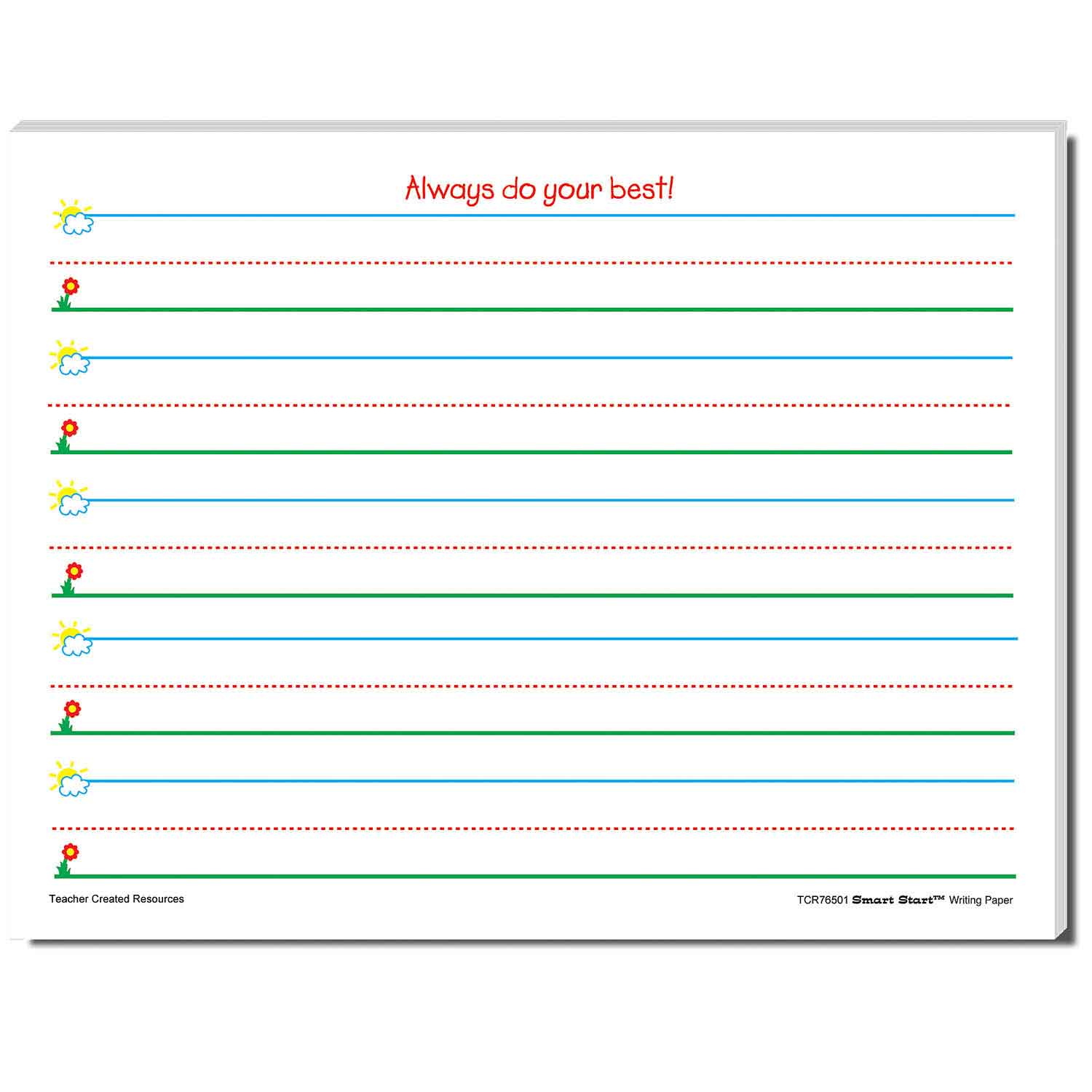 Writing paper based around the “Sky to Ground” concept for handwriting. Bold graphics and color-coded lines in blue, green, and red to help your Kindergartners and First Graders quickly understand the concepts of lines and spaces.