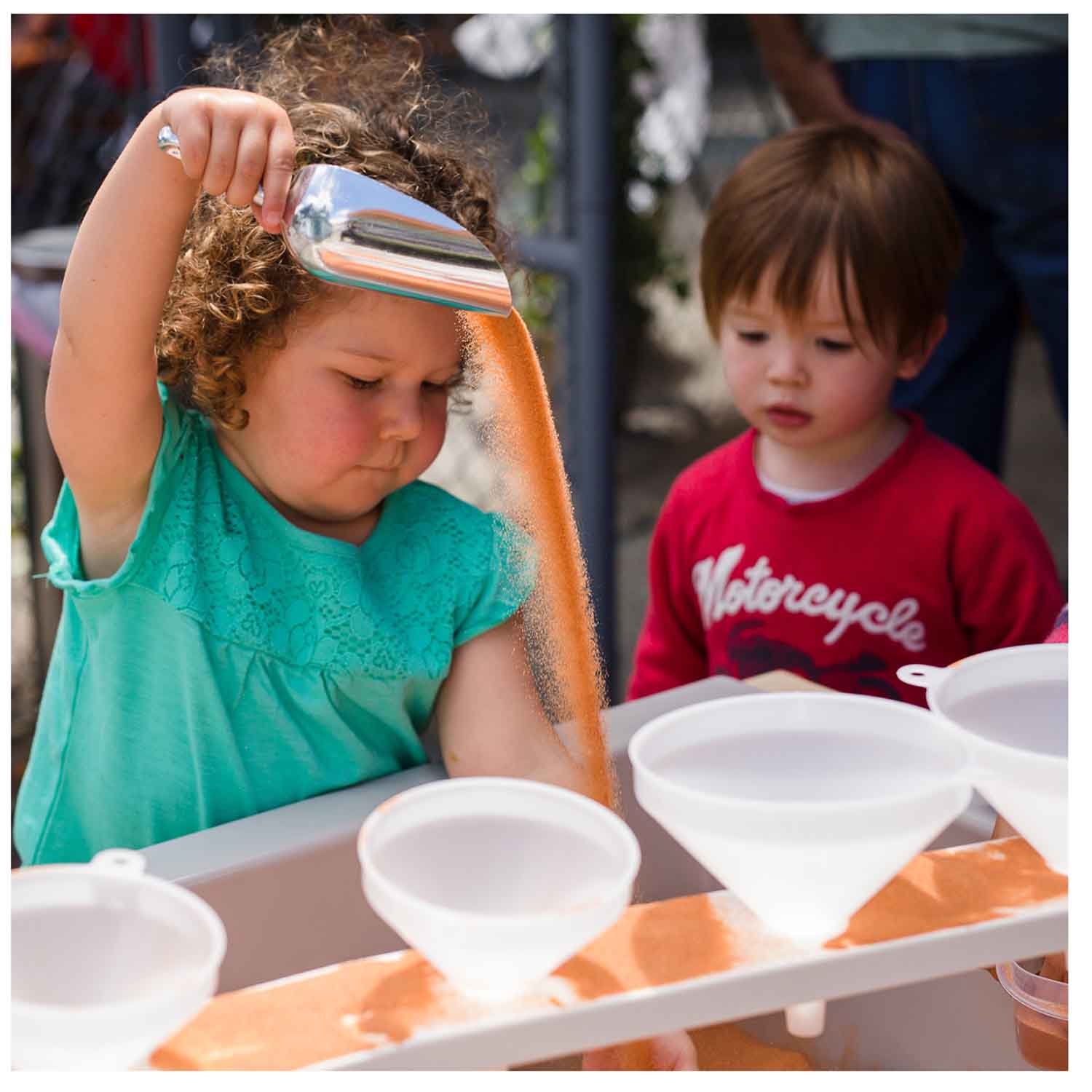 Transform your sensory tables by adding this Kodo Kids Funnel Stand and watch how the play is elevated! The changed height of the play allows children to watch the flow of the materials and compare the difference between mediums, such as water and sand.