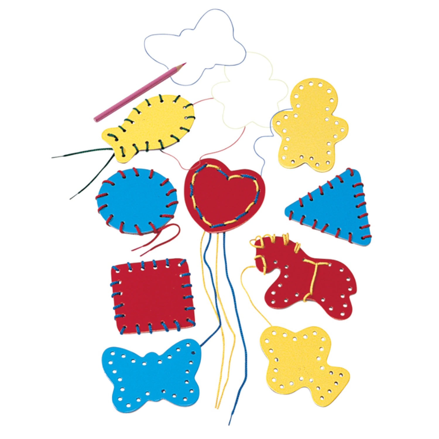 Kids love these lacing & tracing activities. Colorful, heavy-duty chipboard lies flat for smoother tracing of the fun shapes, animals, trains, planes, snacks, and more. Lacing helps promote good penmanship because it develops the pincer grip. The activities also increase fine-motor control, introduce problem-solving, develop concentration, and encourage quiet play.