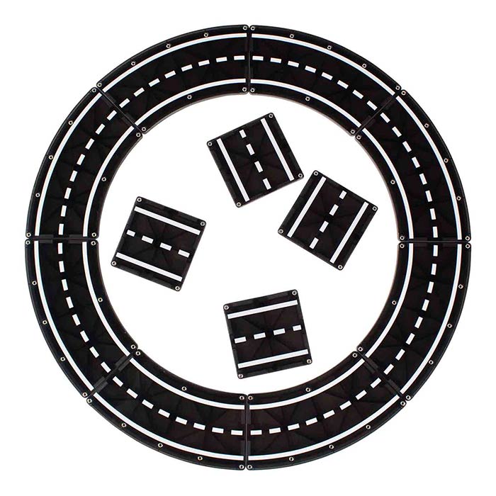 The MAGNA-TILES® Xtra Roads Set is designed to help children create different road configurations for their toys and vehicles. The magnetic roads can be easily connected and reconnected, providing multiple building options. The set includes all the pieces required to build a perfect circle (8 curves) or an oval racetrack (8 curves + 4 squares).