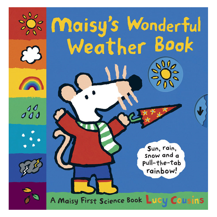 Whether it’s snowy, rainy, or sunny, readers can explore the natural world with Maisy and find out how wonderful weather can be! What’s the weather, Maisy? It’s sunny - hooray! It’s windy - hooray! It’s raining - hooray, hooray! Whatever the weather, Maisy knows how to make the best of the day. Little fans will be proud to help with the forecast by pulling the tabs and turning the wheels to make the rain come down, the snow fall, the lightning flash, and even a rainbow appear!