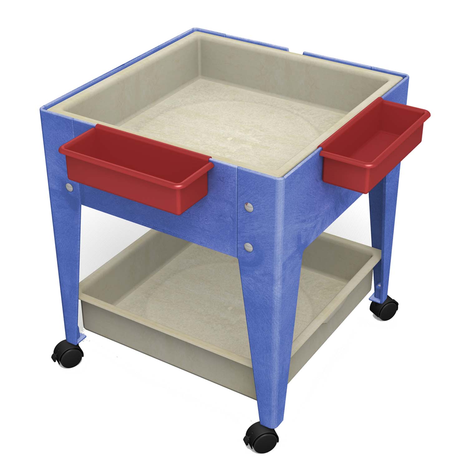 The Mobile Mite Sensory Activity Table is a great addition to your classroom when space is a problem. Perfect for both indoor/outdoor use. Includes 4" deep Mega-Trays, 2 snap-on caddies, and a white plastic write-on/wipe-off lid. 4 locking casters provide easy mobility.