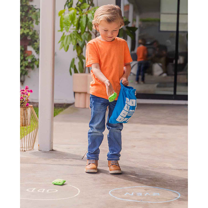 Active learning is easy with these toss and catch, soft and safe bean bags. Each one has a number (1 to 20) on one side and its number word (one to twenty) on the other. Even numbers are embroidered in blue and odd numbers are embroidered in red for easy identification.