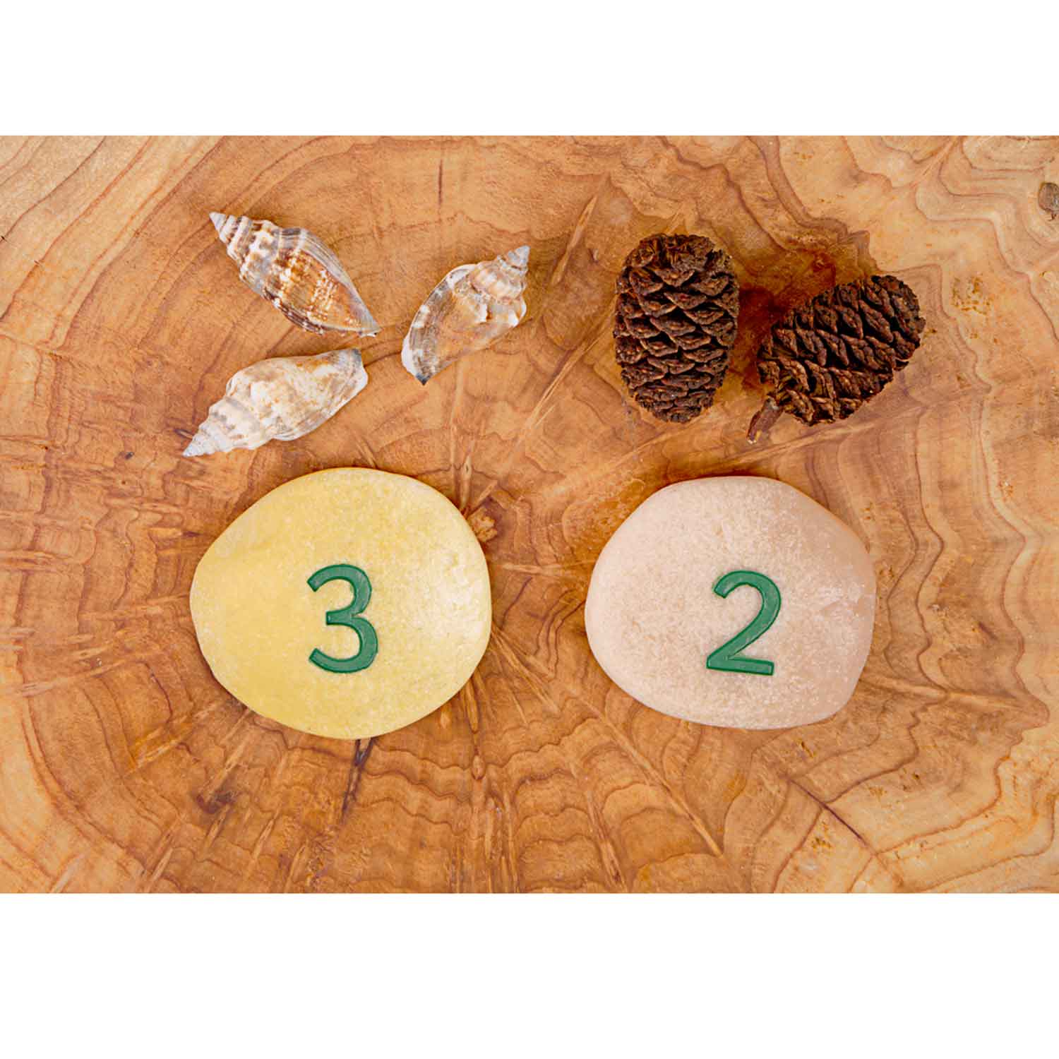 Counting and adding with engraved pebbles engages the brain and the senses! Use in sand, water, or table activities.