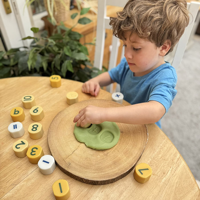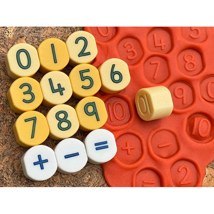 Number Stamping Stones are chunky, easy-to-hold tools that make learning numbers hands-on and fun. By using visual cues like position dots, children can easily recognize numerals and understand number sequences up to 10. Children can stamp numerals and math symbols into sand, dough, or clay while building numeral recognition, number sequencing, and early counting skills. Durable and washable for engaging number play indoors or outside.
