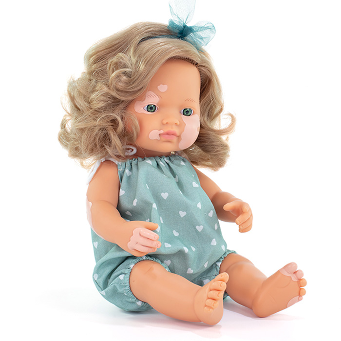 Promote inclusion and acceptance by incorporating play materials that represent all types of diversity. These dolls were designed with sensitivity to reflect children with Down syndrome, vitiligo, and those who use adaptive aids. Made from soft vinyl, they are fully jointed and anatomically correct.