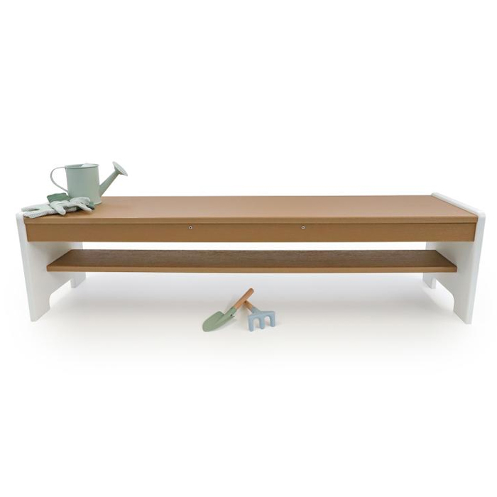 The outdoorED™ Bench features a convenient storage shelf below the seat, perfect for keeping books, baskets of loose parts, or other items within reach. Pair it with the outdoorED™ Activity Table for a well-rounded outdoor activities area. The stainless steel hardware is rust-resistant, and the UV-stabilized HDPE thermoplastic resists fading, stains, mold, and mildew. Easy to clean and maintain, this bench is a practical addition to any outdoor space.