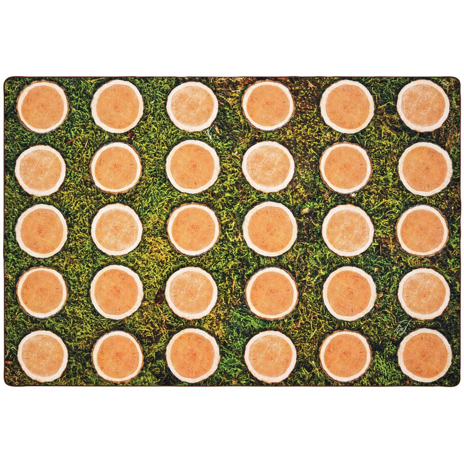 Bring the outdoors into your classroom with a photographed grassy floor and cut tree trunk rounds for children to sit on. Choose this seating rug with alphabet letters wood burned into the wood rounds (Alphabet Tree Rounds Seating Rug) or without for the older primary level classroom.