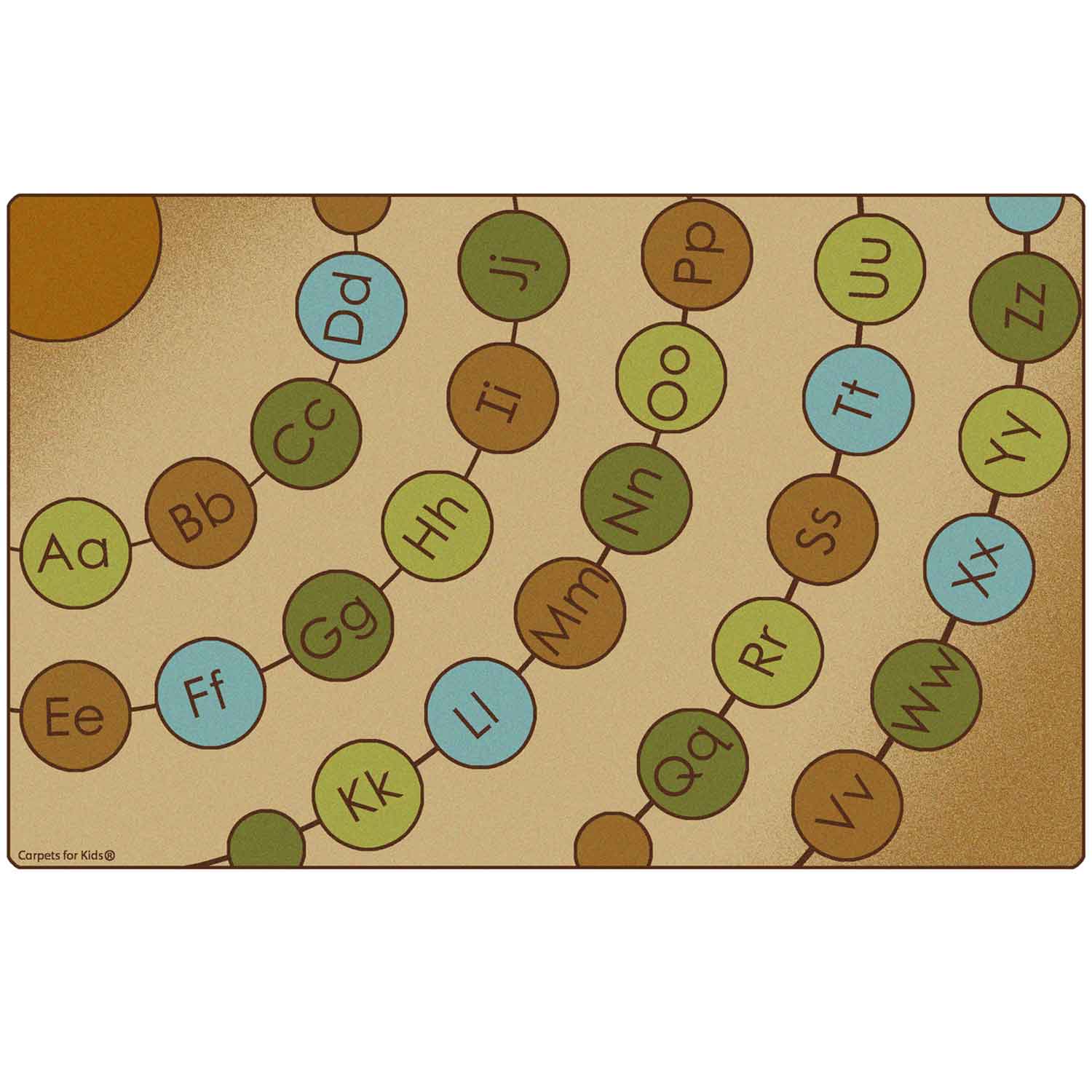 Radiating Alphabet Circles Seating Rug, Natures Colors