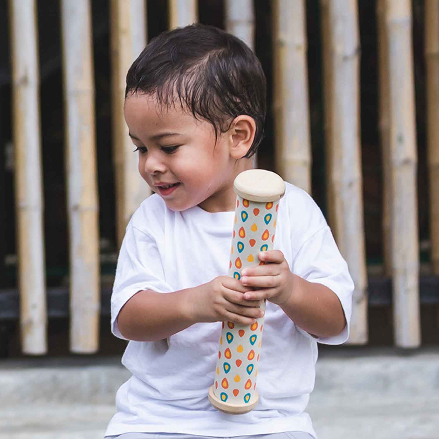 Hear the sounds of peaceful rainfall with this wooden rain maker.
