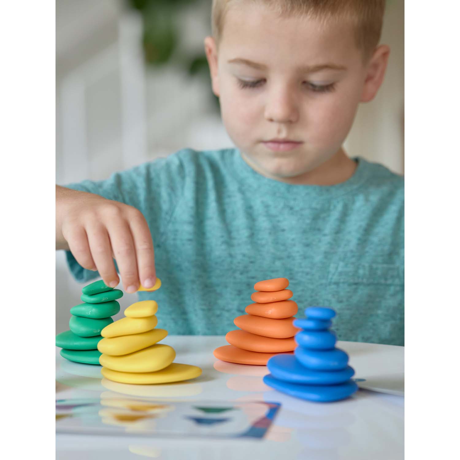 These pebbles look and feel amazing! They're a math and STEM manipulative for counting, sorting, stacking, balancing and designing small structures. Also great for use in therapy and rehab where children can practice stacking pebbles. Children will love these pebbles as loose parts, too. How many can you stack before they topple over?