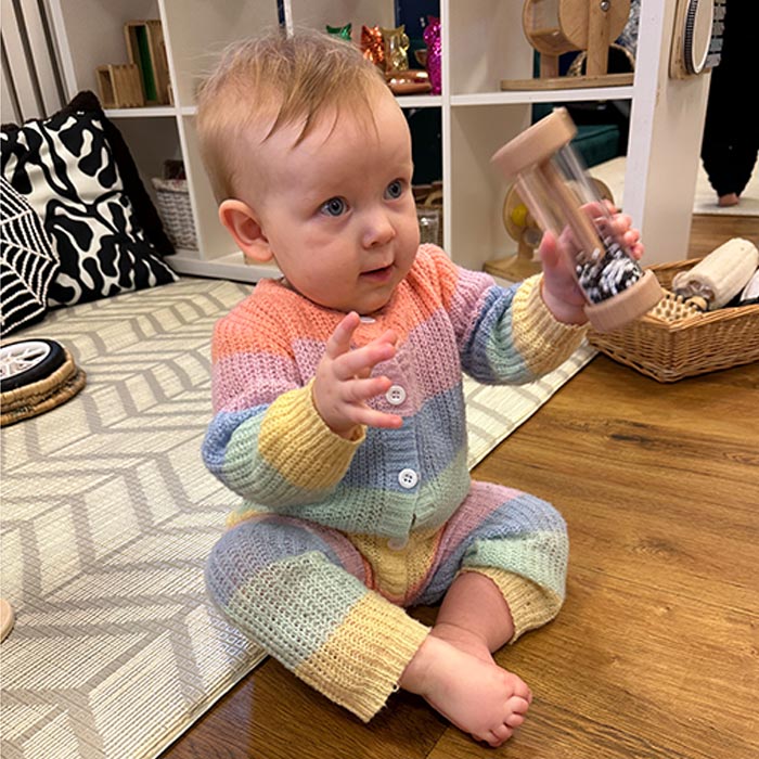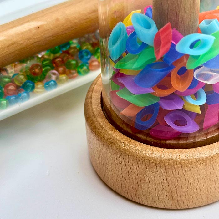 Rattle Rollers support early sensory development through movement, sound, and visual contrast. Each sustainably sourced wooden roller features unique fillings for varied auditory and visual experiences, including high-contrast beads and glow effects for den play. Designed for grasping, rolling, and tracking to strengthen coordination from birth.