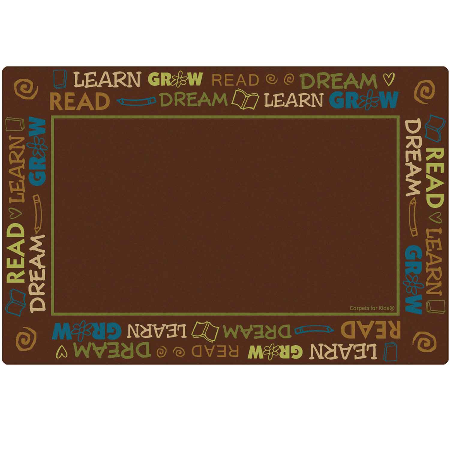 The Read to Dream Border Classroom Rug is bordered by the words Learn Read Dream Grow. This classroom rug provides a great place for gathering and reading in any childhood setting.