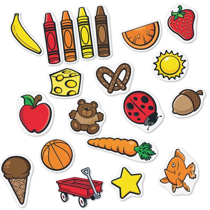 Make a color splash on your whiteboard or magnetic surface! Place the colored objects into the matching "paint cans". Learn colors and pre-math sorting skills. Includes 8 color frames (8” x 10”), 40 magnets and activity guide. Ages 3+