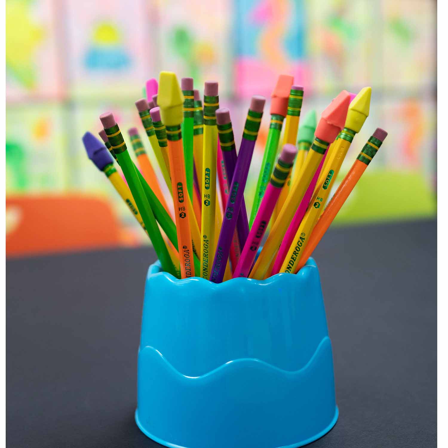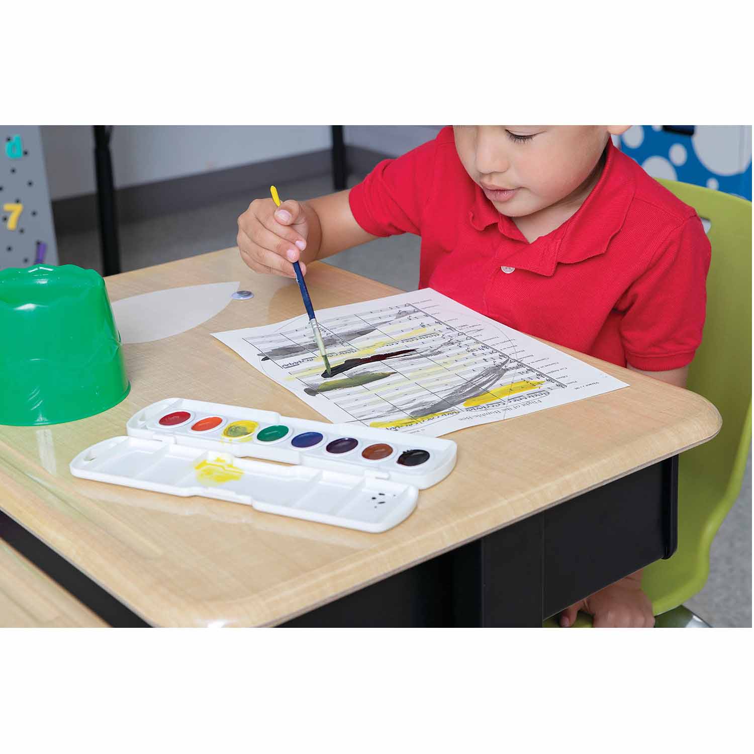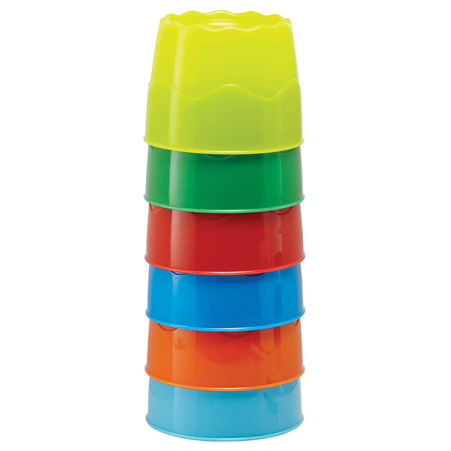 Deep well cups have brush holders formed along the top edge. Wide base keeps pots from tipping and they are stackable for easy storage.