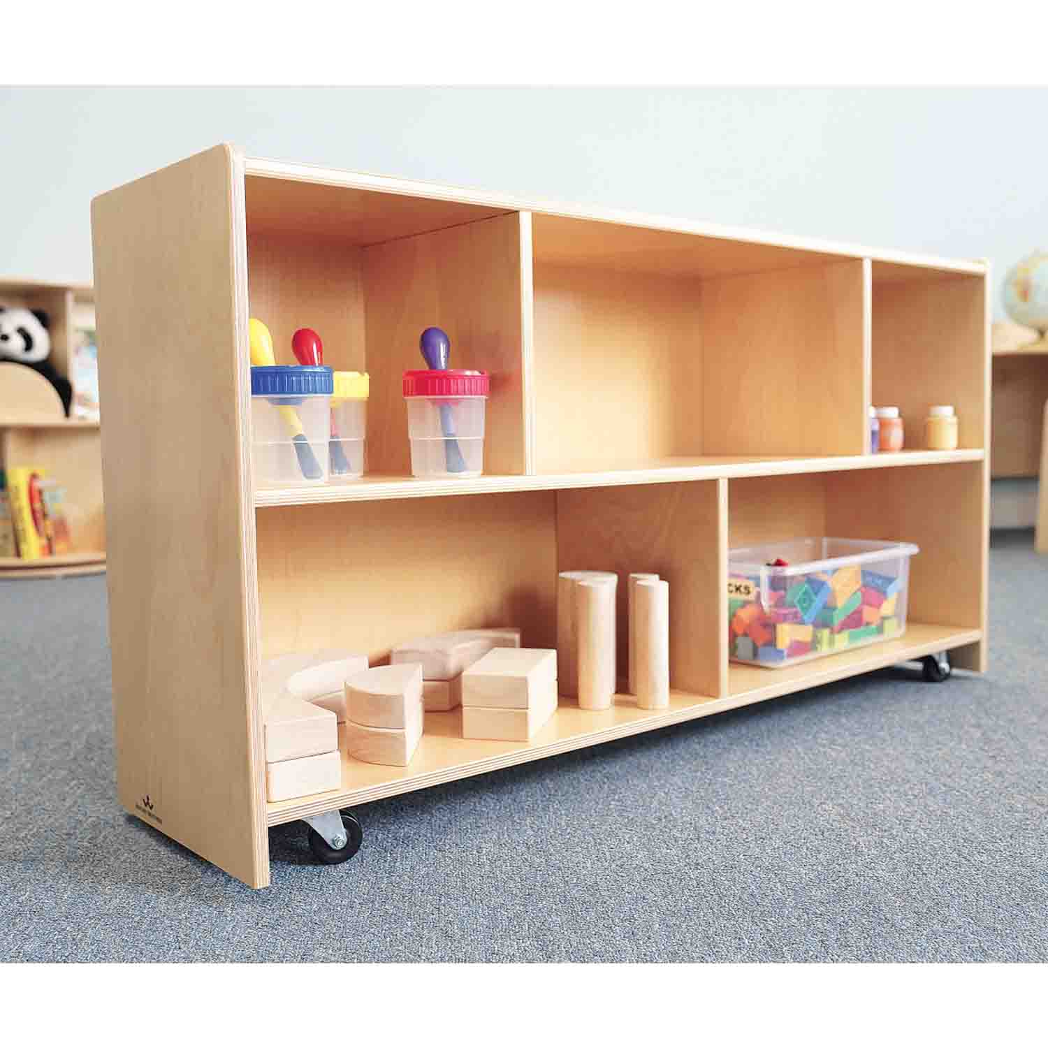 Combine this Straight Back Mobile Storage Cabinet with the curve in or curve out cabinets in all sorts of configurations. Constructed in durable 15mm birch plywood with no visible screws for a finished furniture look in a safe, non-toxic natural UV finish