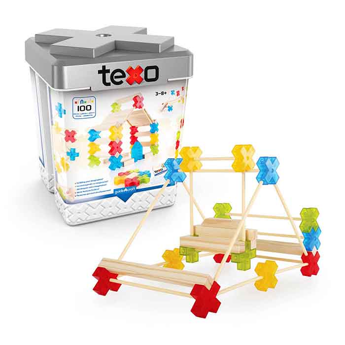 This classic open-ended construction toy introduces kids to a variety of design and building systems. Ideal for big-time collaborative building! Plastic rods, solid wood planks and geometric connectors fit together simply. Set includes 100 pieces and activity guide with easy step-by-step instructions.