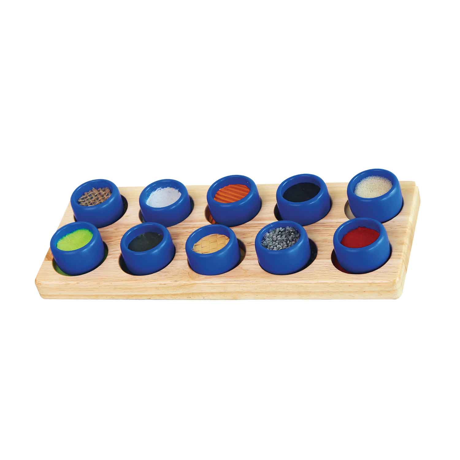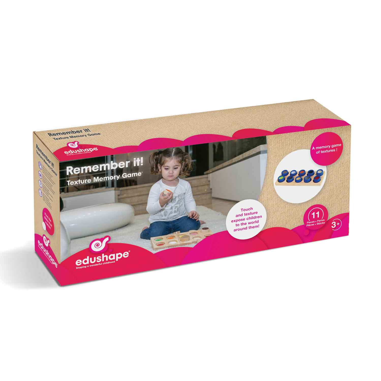 Identifying and remembering textures is an important part of sensory learning. In this memory game, children touch and name the colors and textures of the disks and then find the matching disc.