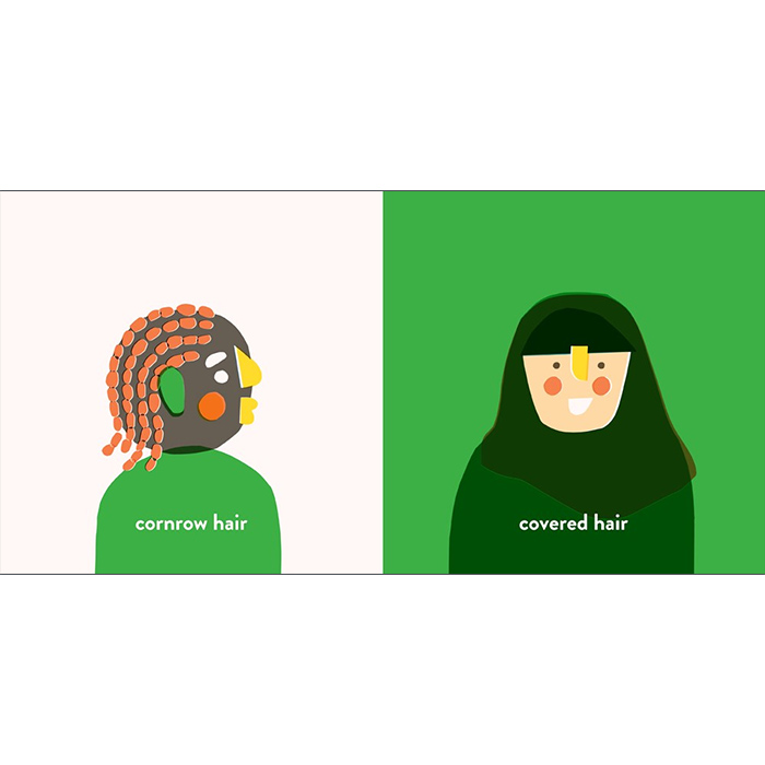 The Hair Book is a beautifully crafted tribute to all kinds of hair, featuring bold, colorful graphics and poetic rhyme. From covered hair to bun hair to party hair, this book celebrates the beauty of diversity. No matter your hair type, you are welcome anywhere!