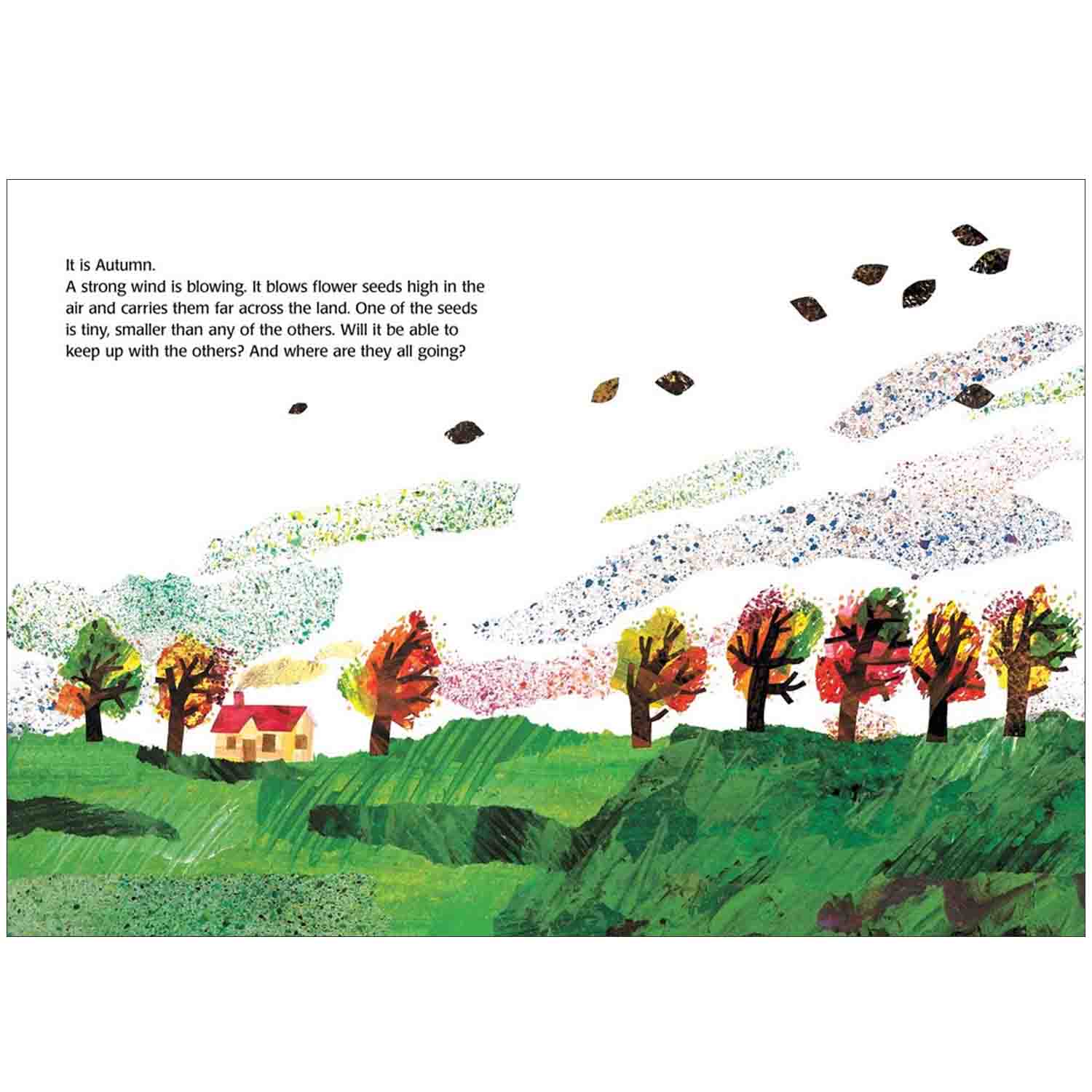 In autumn, a strong wind blows flower seeds high in the air and carries them far across the land. One by one, many of the seeds are lost -- burned by the sun, fallen into the ocean, eaten by a bird. But some survive the long winter and, come spring, sprout into plants, facing new dangers -- trampled by playing children, picked as a gift for a friend. Soon only the tiniest seed remains, growing into a giant flower and, when autumn returns, sending its own seeds into the wind to start the process over again.